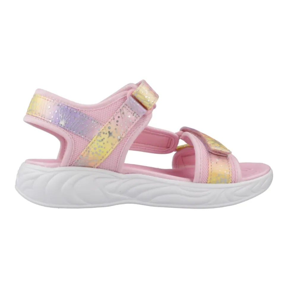 Stap in een magische wereld met de Skechers Unicorn Dreams Sandalen, perfect voor zonnige dagen en speelavonturen. Belangrijkste kenmerken: Roze | Ombre satijnen stof en mesh | Verstelbare klittenbandsluiting | Comfortabele binnenzool | Lichtgevende functie | Glanzende afwerking | Afmetingen en pasvorm: Normale pasvorm |