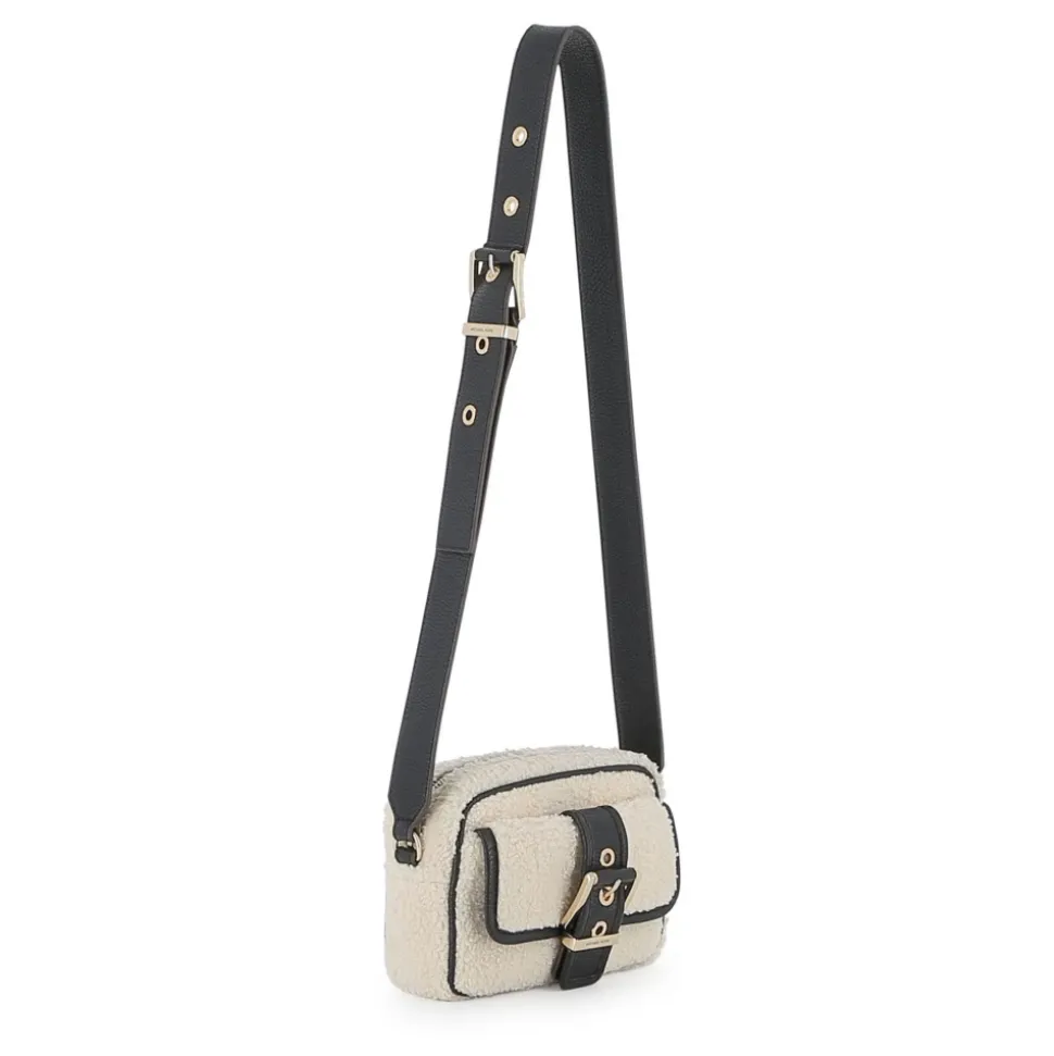 De Michael Kors Verfijnde Crossbody Tas combineert een buitenkant van gestructureerd gecoat materiaal met een zachte synthetische bontrand voor een compact, gepolijst accessoire dat alledaagse outfits verfraait. Belangrijkste kenmerken: Wit | Bianco | Polyester | gecoate stof | Zachte, veerkrachtige synthetische bontrand | Verstelbare schouder-/crossbodyriem met logo-gesp | Voorvak met magnetische sluiting | Hoofdvak met metalen rits met logo | Goudkleurige metalen hardware | Gelakte randen | Compact rechthoekig silhouet | Afmetingen en pasvorm: 12 x 17,5 x 5 cm | Samenstelling en verzorging: Buitenlaag: 100% polyester | Rand: 100% polyurethaancoating | Imitatiebont: 100% polyester | Voering: 100% polyester | Volg de wasvoorschriften op het interne label.