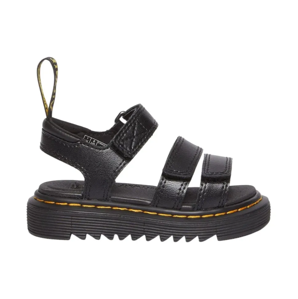 Upgrade de stijl van je kleine jongen met deze Dr. Martens leren sandalen. Met drie verstelbare klittenbanden en een klittenband hielband zijn deze sandalen versierd met een gele en zwarte hiel tab en iconische gele stiksels.