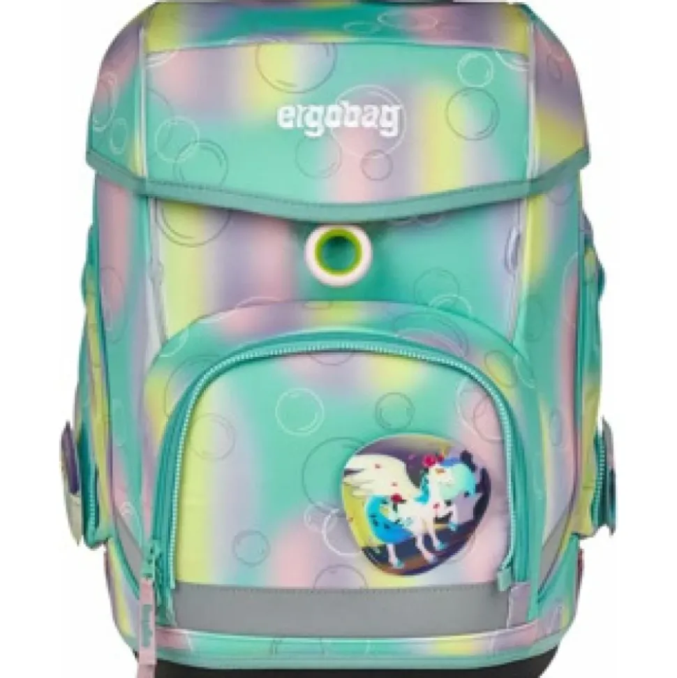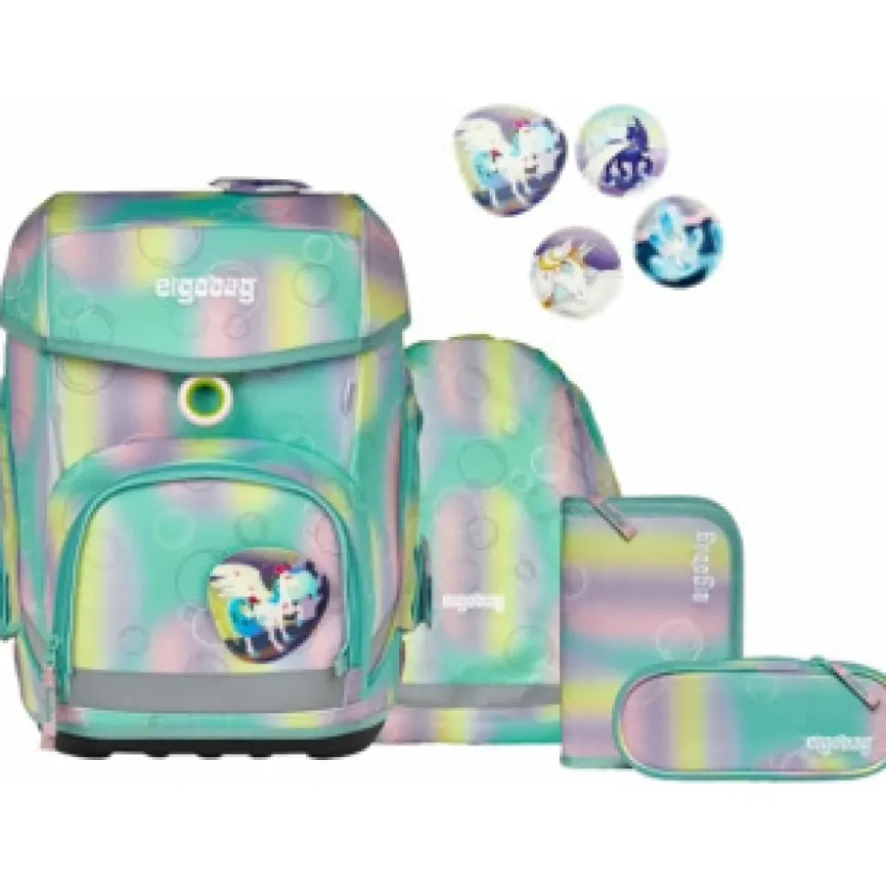 Ergobag 5-delige set – ergonomische schoolrugzak maat 28 x 40 x 25 cm (B/H/D), gymtas, 5 klittenband patches, 22-delig gevuld etui en etui. Verantwoord geproduceerd uit 27,7 gerecyclede PET-flessen.