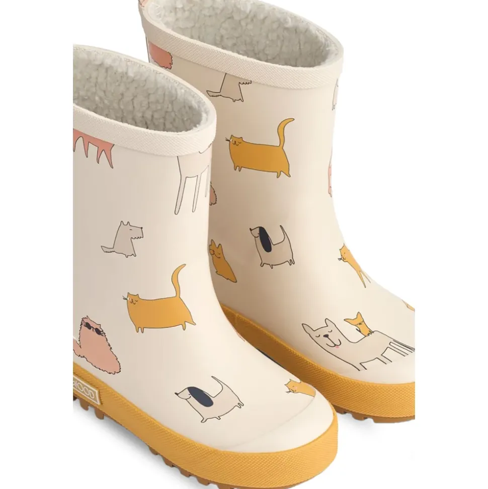 “MASON” REGENLAARZEN van Liewood zijn een uniek aanbod in het segment kinderschoeisel, waarbij klassieke stijl wordt gecombineerd met vrolijk design. Een harmonieuze samenstelling van originele illustraties die vrolijke dieren afbeelden – honden en katten, inclusief een charmante kat met zonnebril – geeft deze regenlaarzen een onderscheidend, sprookjesachtig karakter. De hoge schacht die boven de enkel reikt en de wijde opening zorgen voor comfort en gemak bij het aantrekken. De buitenlaag, gemaakt van de hoogste kwaliteit rubber, garandeert WATERDICHTHEID, waardoor de voeten van kinderen zelfs tijdens intensief spelen in de regen beschermd blijven. De lichte, zachte voering zorgt daarentegen voor thermisch comfort en een prettige draagervaring. Een duidelijk voordeel is de diep gegroefde zool met een hoge beschermer, die STABILITEIT EN VEILIGHEID biedt op gladde oppervlakken. “Mason” regenlaarzen – de essentie van zorgeloze elegantie in een pastelkleurig palet. WAAROM IS HET DE MOEITE WAARD OM DIT PRODUCT TE KOPEN? * Uniek, origineel ontwerp met een sprookjesachtige uitstraling * Hoogwaardige materialen die waterdichtheid garanderen * Comfortabele en warme binnenvoering * , antislip zool voor volledige veiligheid * Gemakkelijk aan te trekken dankzij een wijde opening en ergonomische vorm Zoolhoogte: 2,5 cm Zoolhoogte op het hoogste punt: 2,5 cm