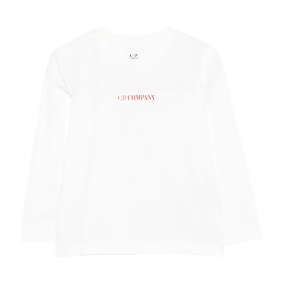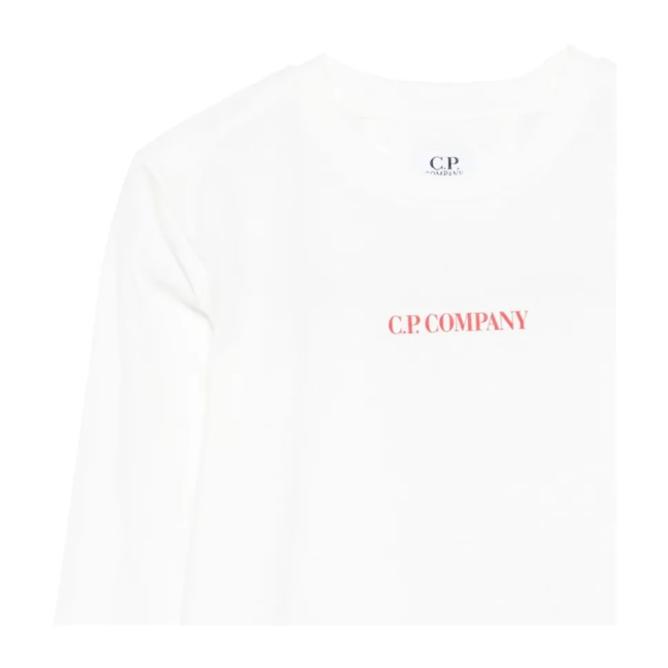 C.P. Company wit longsleeve ronde hals t-shirt met logo print voor jongens.