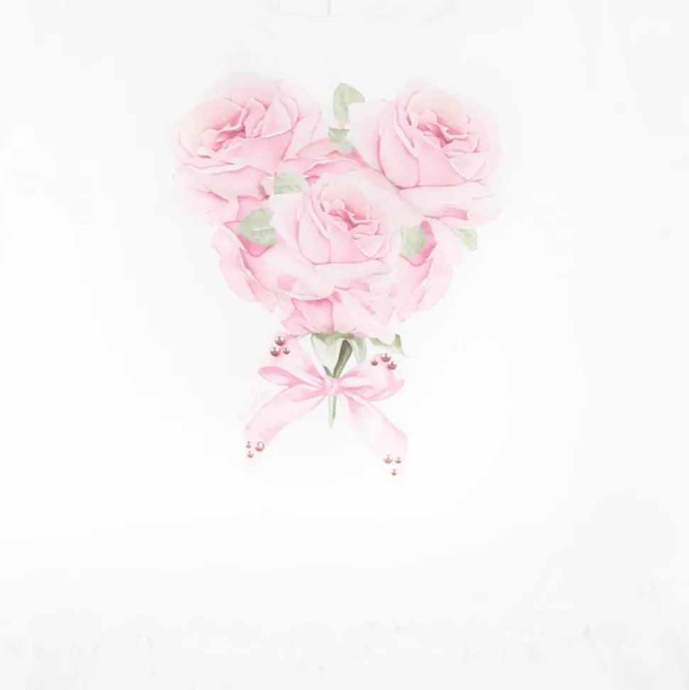 Kleed je kleine meisje in stijl met deze Monnalisa witte pak set. De set bevat een korte mouwen t-shirt met een geribbelde ronde hals, knoopsluiting en een ruche aan de onderkant, versierd met een prachtige rozenprint. De roze gestreepte leggings hebben een elastische taille en een allover rozenontwerp. Gemaakt in Italië van 100% katoen. Machinewasbaar op 30°C.