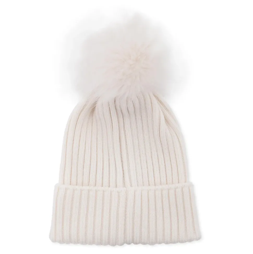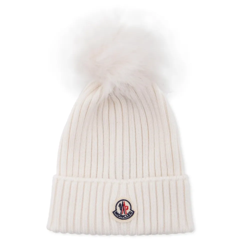 Upgrade de winterstijl van je kleintje met deze Moncler witte geribbelde tricot muts. Voorzien van een omslag, pompom en iconisch logopatch aan de voorkant. Gemaakt in Italië van 100% wol. Alleen handwas.