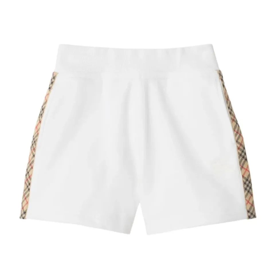 Verrijk de stijl van je kleine meid met deze Burberry Kids Checked Shorts. Met witte geruite zij-inzetstukken, een elastische taille, achterzakken en een wol-effect textuur zijn deze shorts zowel stijlvol als comfortabel. Gemaakt van 100% katoen.