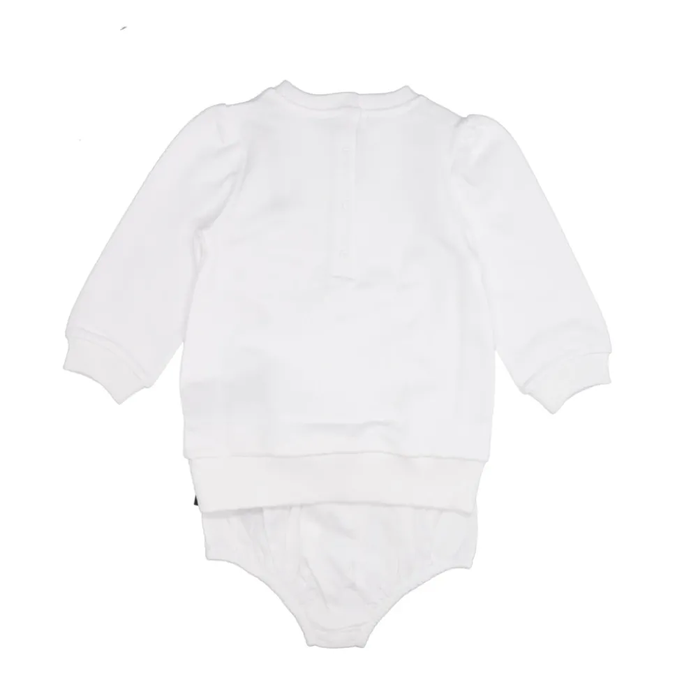 Kleed je kleine fashionista in stijl met deze Balmain Kids Body voor meisjes. Het heeft lange mouwen, een ronde hals en een handige sluiting met drukknopen aan de achterkant. De geribbelde kraag, mouwboord en onderkant voegen een trendy touch toe. Het logo-detail aan de voorkant geeft een vleugje verfijning. De afneembare culottes bieden veelzijdigheid. Gemaakt van 100% katoen, zorgt deze body voor comfort en duurzaamheid.