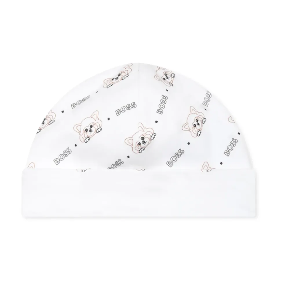 Kleed je kleintje in stijl met deze Hugo Boss Witte Katoenen Babygrow Set, bestaande uit een babygrow, slabber en muts. Deze set combineert comfort en schattigheid met zijn schattige all-over logo en panda details. Belangrijkste kenmerken: Wit | Katoen | Drukknoopsluiting | Lange mouwen | Ronde hals | Voetjes | All-over logo en panda details | Afmetingen en pasvorm: Regular fit | Samenstelling en onderhoud: 100% Katoen | Machinewasbaar op 30°C