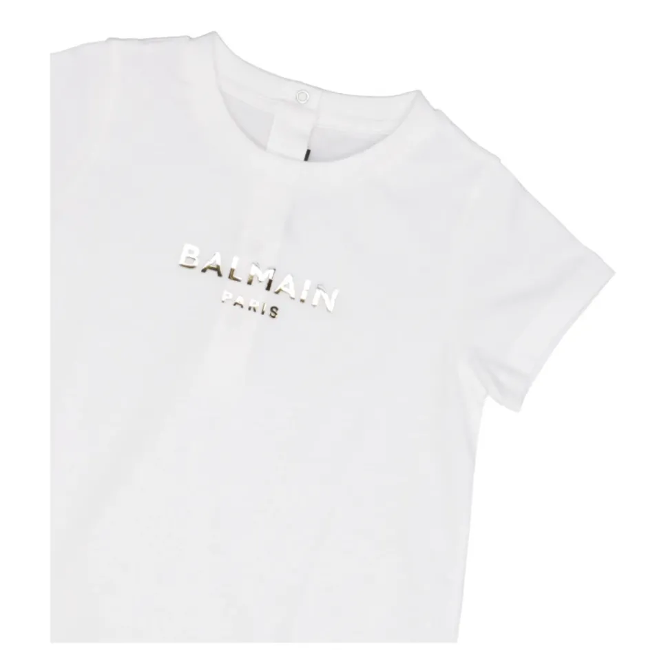 Kleed je kleine fashionista in stijl met deze Balmain Kids Body set. Gemaakt van zacht katoen, deze top met ronde hals heeft korte mouwen, een effen kleur ontwerp en een sluiting met drukknoop aan de achterkant voor gemakkelijk aankleden. De voorkant toont een bedrukt logo voor een vleugje ontwerper flair. Maak de look compleet met de bijgevoegde culottes.