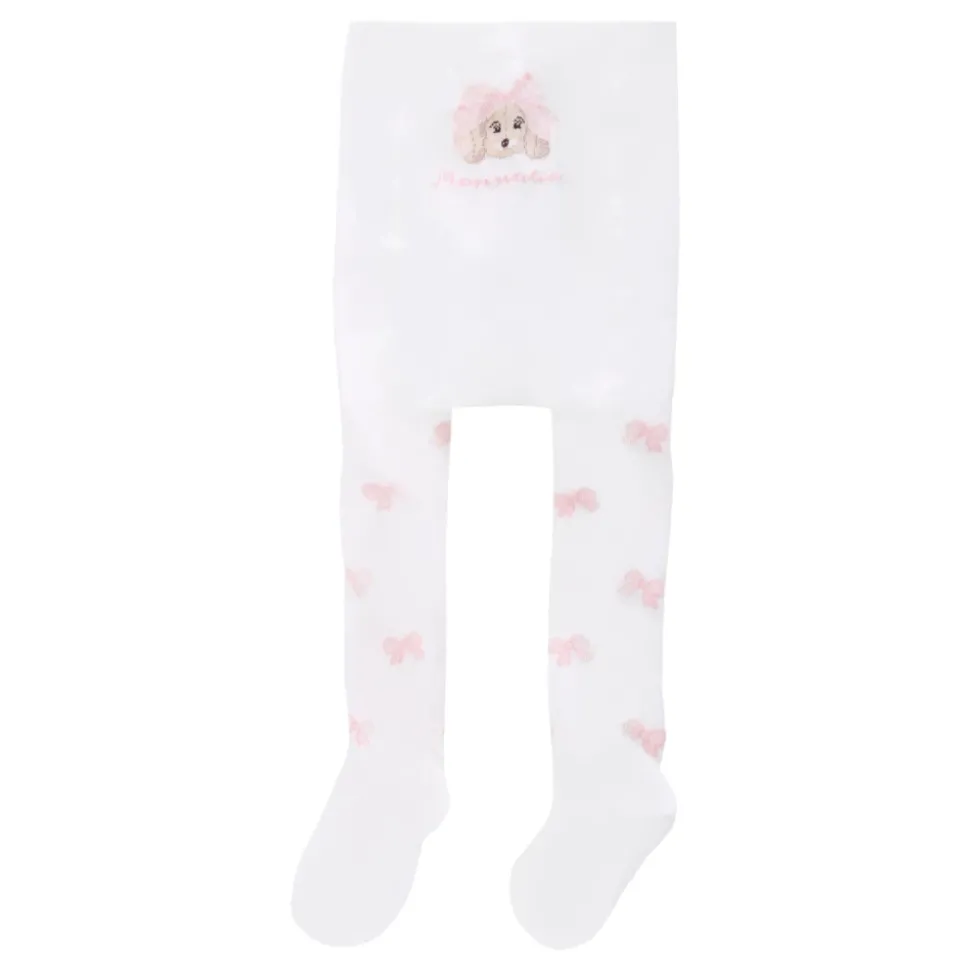 Upgrade de stijl van je kleintje met deze Monnalisa witte maillot. Gemaakt in Italië van warm katoen, deze maillot heeft een elastische taille en een all-over roze jacquard strik voor een vleugje charme.