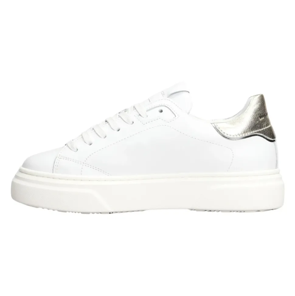 Ontdek de Philippe Model Witte Lage Sneakers, vervaardigd in Italië van glad kalfsleer met een opvallende gouden inzet aan de achterkant. Deze sneakers zijn voorzien van een rubberen platformzool en een kenmerkende merklogo applicatie op de zijkant, wat zowel stijl als comfort biedt. Belangrijkste kenmerken: Wit | Goud | Kalfsleer | Vetersluiting aan de voorkant | Ronde neus | Metalen logo plaatje | Kenmerkende merklogo applicatie | Afmetingen en pasvorm: Normale pasvorm | Samenstelling en onderhoud: 100% kalfsleer