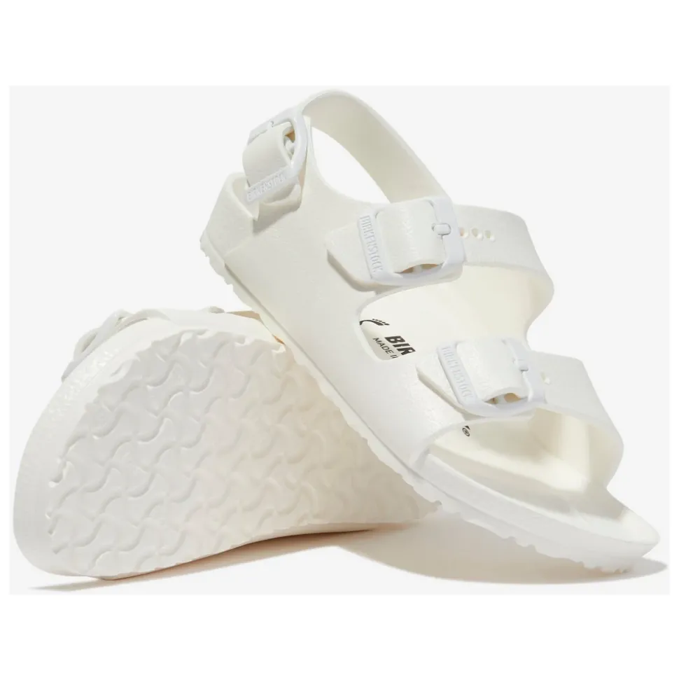 Upgrade de schoenen van je kind met de Birkenstock Kids Milano Eva Sandalen in het wit, een luxueuze en comfortabele toevoeging aan hun zomergarderobe. Dit high-end designerstuk straalt verfijning en premium vakmanschap uit, perfect voor warme zomerdagen. Het uniseks ontwerp in een neutrale tint maakt het een veelzijdige keuze voor zowel jongens als meisjes. Stap stijlvol het seizoen in met Birkenstock!