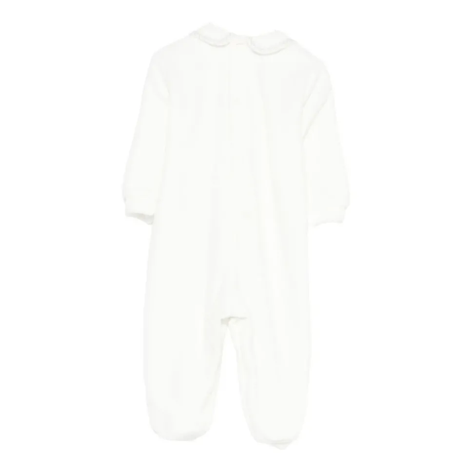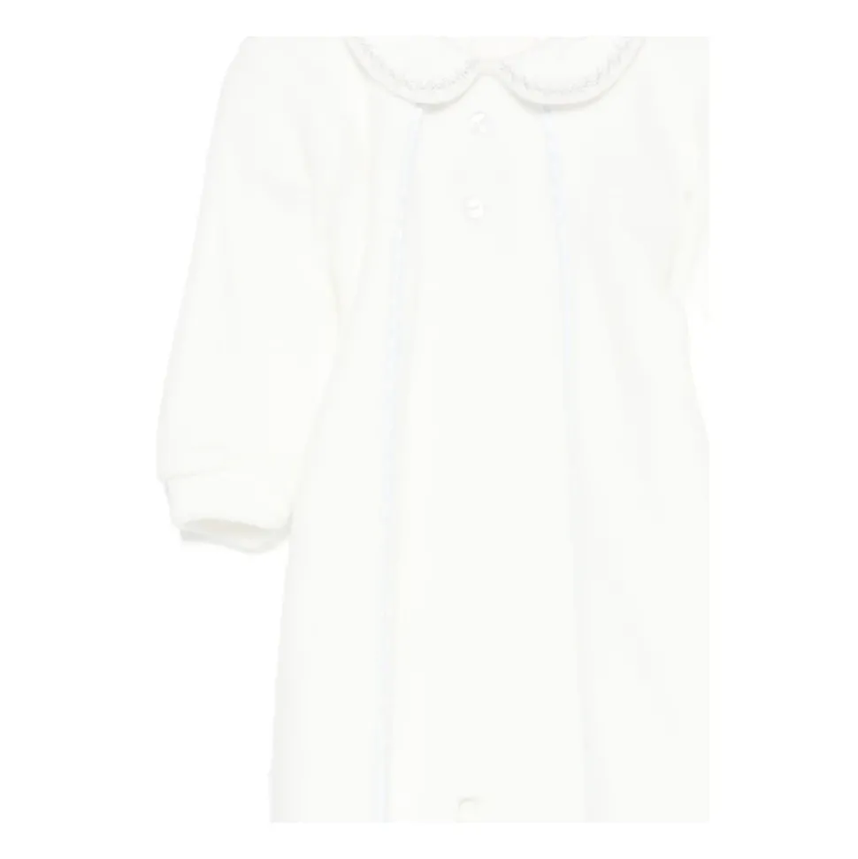 Kleed je kleine heer in stijl met deze LALALU-robe met een klassieke witte Peter Pan-kraag, drukknoopsluiting, lange mouwen en voetjes. Gemaakt van 100% stof.
