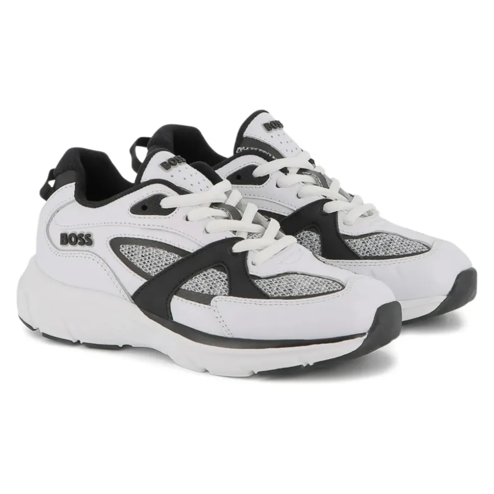 Upgrade de stijl van je kleine man met deze Hugo sneakers. Voorzien van mesh panelen, vetersluiting aan de voorkant, gewatteerde enkel, rubberen zool en logo-details. Gemaakt in China.