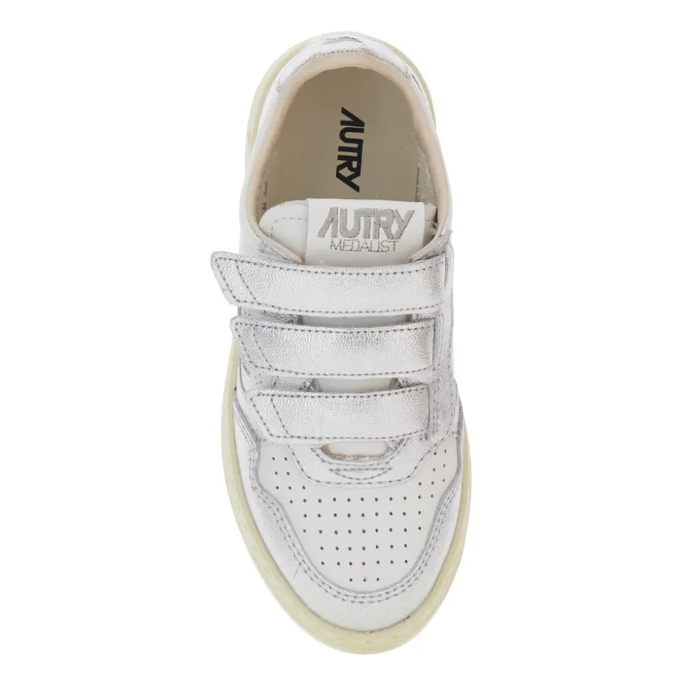 Autry KIDSTRIPES LOW sneakers voor meisjes, gemaakt van 55% koe en 45% metallic koeienstof.