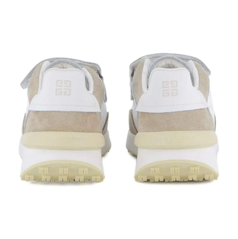 Upgrade de stijl van je kleine jongen met Givenchy Kids Spectre sneakers. Deze sneakers hebben suède inzetstukken, witte enkelvulling, klittenbandsluiting, geperforeerd detail en het iconische Givenchy-logo.