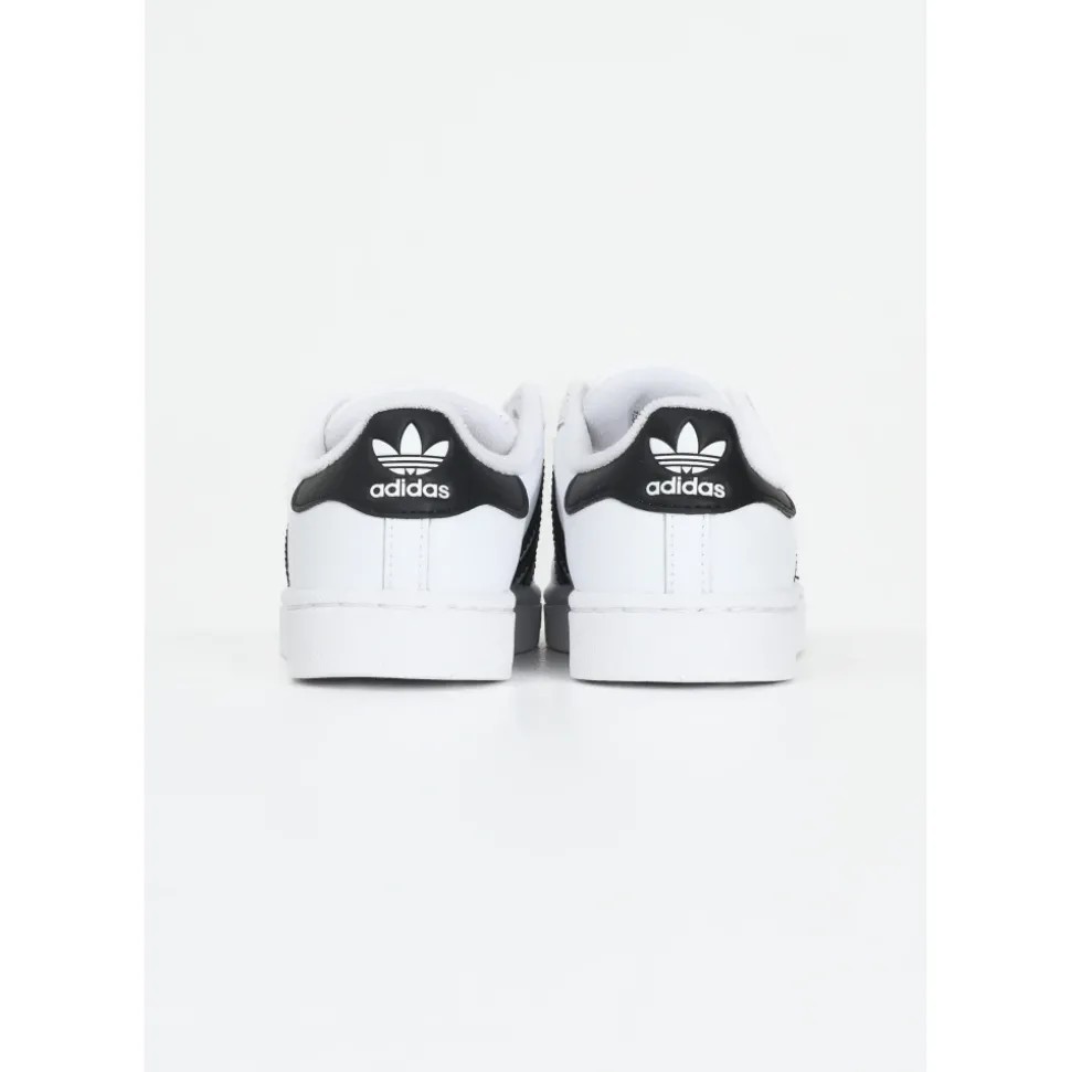 ADIDAS ORIGINALS Superstar II witte sneakers voor jongens en meisjes. De iconische details van deze adidas Superstar voor kinderen blijven de tand des tijds doorstaan. Trouw aan het oorspronkelijke ontwerp uit de jaren ’70, vallen deze veelzijdige sneakers nog steeds op met de onmiskenbare rubberen neus en de gekartelde 3 strepen. Al meer dan 50 jaar zijn adidas Superstar overgegaan van het veld naar de straat en zijn ze nu klaar om het stokje door te geven aan de volgende generatie iconen. Herfst winter seizoen. Leren en rubberen sneakers voor kinderen met laag profiel. Stijl JH9980.