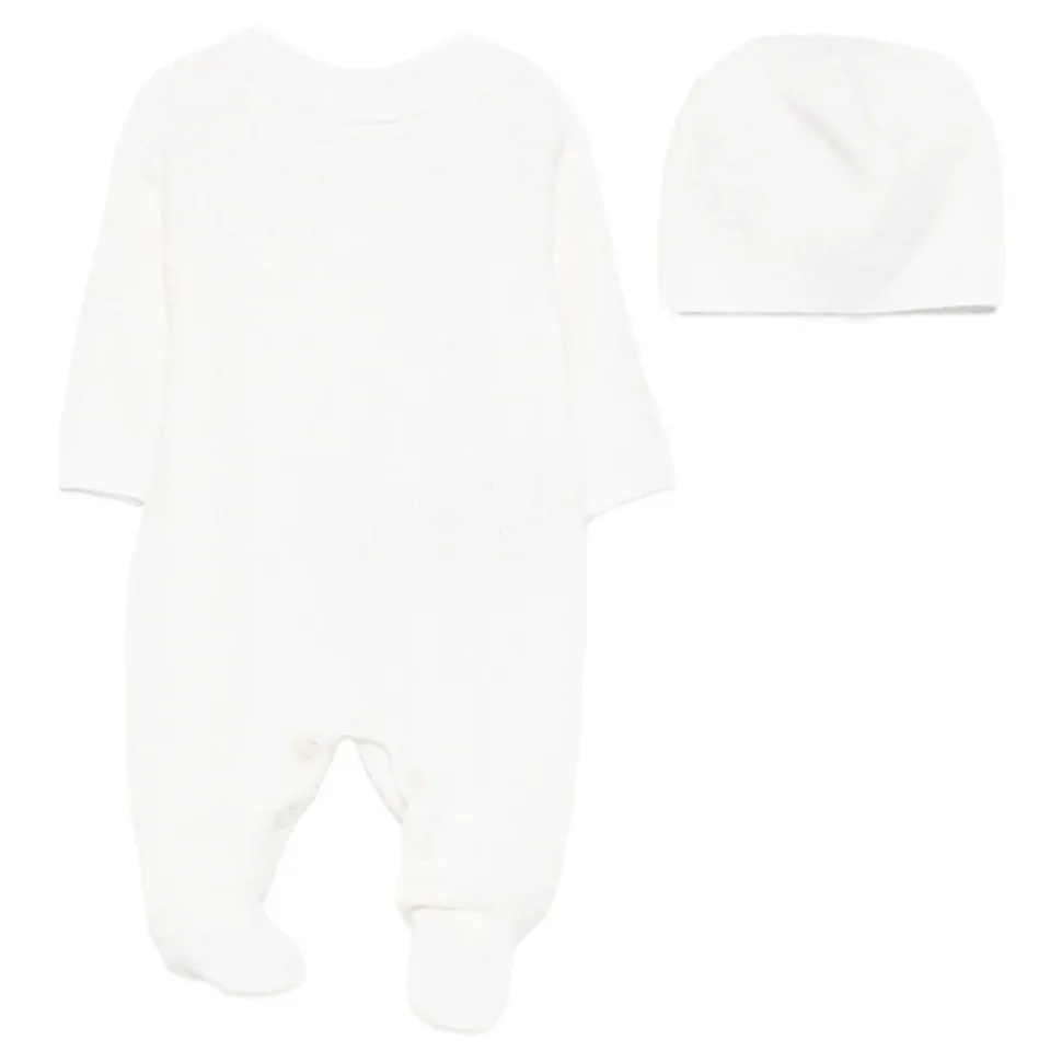 De Balmain wollen-katoenen gebreide set heeft een getextureerde gebreide afwerking en een bijpassende muts, ontworpen voor comfortabel dagelijks gebruik. De voetjes en lange mouwen van de set zorgen voor praktische warmte en bedekking. Belangrijkste kenmerken: Wit | Wol | Inclusief bijpassende muts | Voetjes | Getextureerd (reliëf) breisel | Lange mouwen | Bijpassend muts-/voetjesdesign | Samenstelling & onderhoud: 56% wol, 26% katoen, 18% viscose