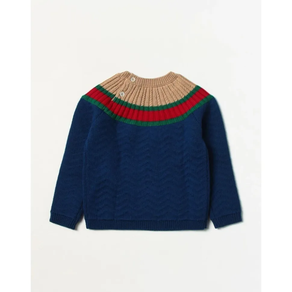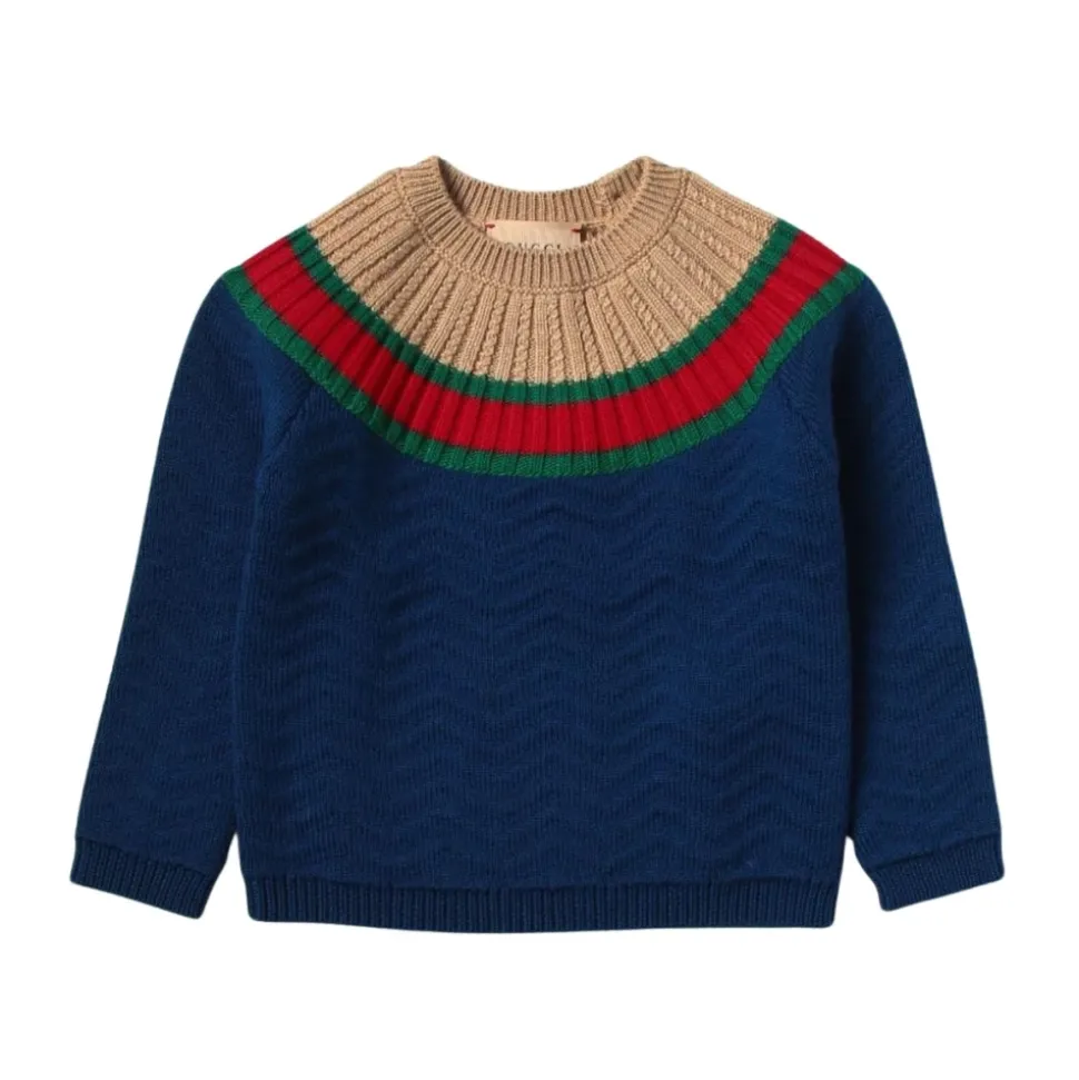Gucci`s Wollen Trui in blauw biedt een mix van warmte en zachtheid, perfect voor elke gelegenheid. Dit klassieke ontwerp belichaamt Gucci`s kenmerkende elegantie en functionaliteit. Belangrijkste kenmerken: Blauw | Wol | Klassiek ontwerp | Afmetingen en pasvorm: Normale pasvorm | Samenstelling en onderhoud: 100% Wol | Uitsluitend chemisch reinigen.