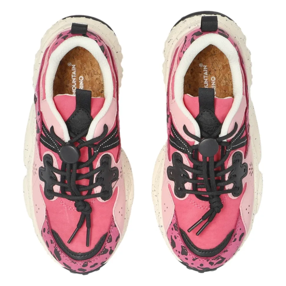 De Flower Mountain Yamano 3 Sneakers combineren een gebeeldhouwde, golvende zool met een gedurfde abstracte print voor een designer look en betrouwbare grip. Het model combineert gelaagd leer en synthetische bovenstukken met verfijnde details voor dagelijks gebruik. Belangrijkste kenmerken: Roze | Leer en synthetische materialen | Zool met hoge grip | Ergonomisch zoolontwerp | Lichtgewicht rubberen buitenzool | Vetersluiting | Kurken binnenzool | Comfortabel profiel bij de hiel | Abstract meerkleurig patroon in donkerder roze en zwart | Gevlekte zool met golvend profiel | Zwarte contrasterende details | Afmetingen & pasvorm: Zoolhoogte: 3 cm | Samenstelling & onderhoud: Leer | Synthetische materialen