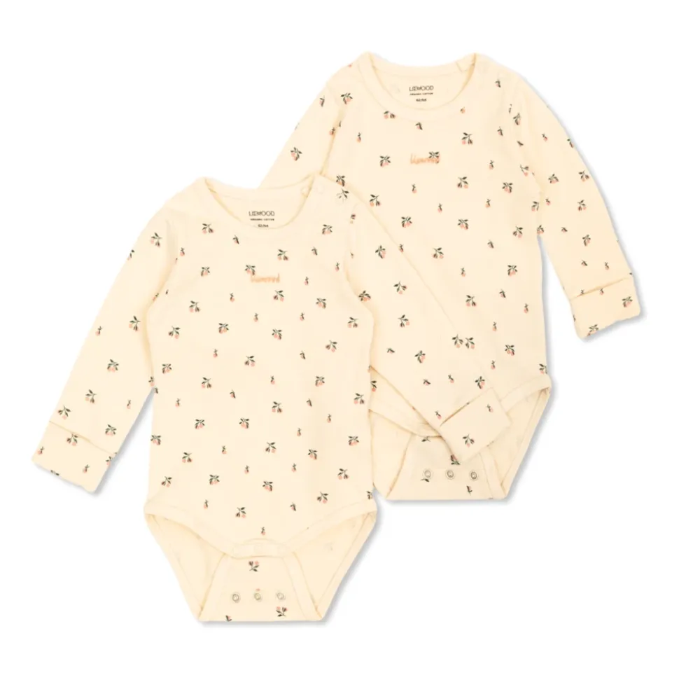 De Liewood Yanni Grow Bodystocking 2-Pack biedt zacht, stretch katoenmix comfort met een all-over kersenmotief en praktische drukknoopsluitingen voor gemakkelijk aan- en uitkleden en verschonen. Belangrijkste kenmerken: Beige | Crème | Katoen | Ademende stof | Stretch voor comfort | Drukknoopsluitingen in het kruis | Twee sets drukknopen voor verstelbare pasvorm | Omgevouwen hoge ribboorden voor extra lengte | Ronde rib halslijn | Lange mouwen | All-over kersenprint | Pastel geborduurd logo | Afmetingen & pasvorm: Aansluitend | Samenstelling & verzorging: 95% katoen, 5% elastaan | Machinewas 30°C, geen wasverzachter gebruiken, niet in de droogtrommel, strijken op middelhoge temperatuur, niet bleken.