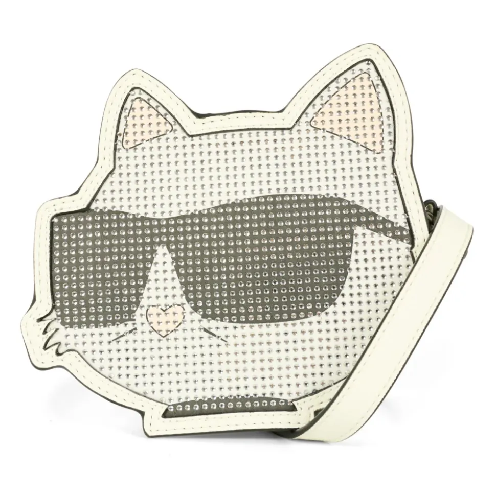Kleur: WitBeschrijving: Witte tas van imitatieleer met een verstelbare en afneembare schouderriem en een ritssluiting aan de bovenkant. Het is versierd met Choupette en strass-steentjes aan de voorkant en het logo aan de achterkant.Afmetingen (L x H x D): 16 cm x 15 cm x 7 cmDetails: 100% polyester.