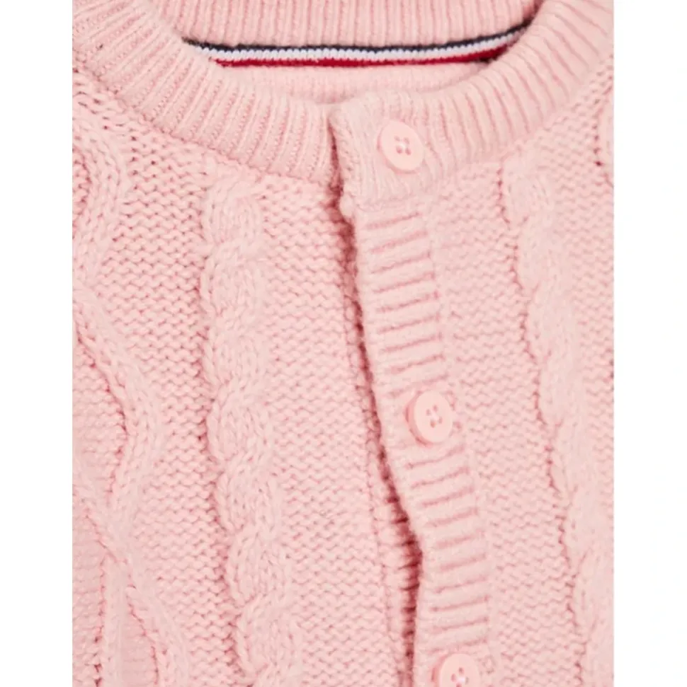 Tommy Hilfiger Kids Set: Gebreide cardigan met vlechtdesign en knoopsluiting met logoborduursel op de mouw. Bijpassende gebreide muts met geborduurd logo. Effen gebreide broek met gevlochten zijband en borduursel onder de elastische tailleband. Geribde manchetten, zoom en tailleband. Ideaal voor winterkleding. WASSEN OP 30° IN DE WASMACHINE – NIET STRIJKEN – NIET WASSEN MET LICHTGEKLEURDE KLEDING – NIET BLEKEN. Gemaakt in China. Samenstelling: 60% katoen, 30% polyamide, 10% wol.