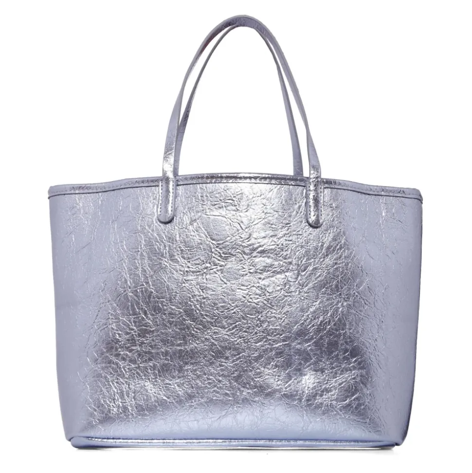 Voeg een vleugje stijl toe aan de outfit van je kind met deze zilveren Molo-tas in gehamerd effect eco-leer. De tas heeft handvatten en is gemaakt van 100% polyurethaan. Afmetingen: 30cm x 24cm x 11cm.
