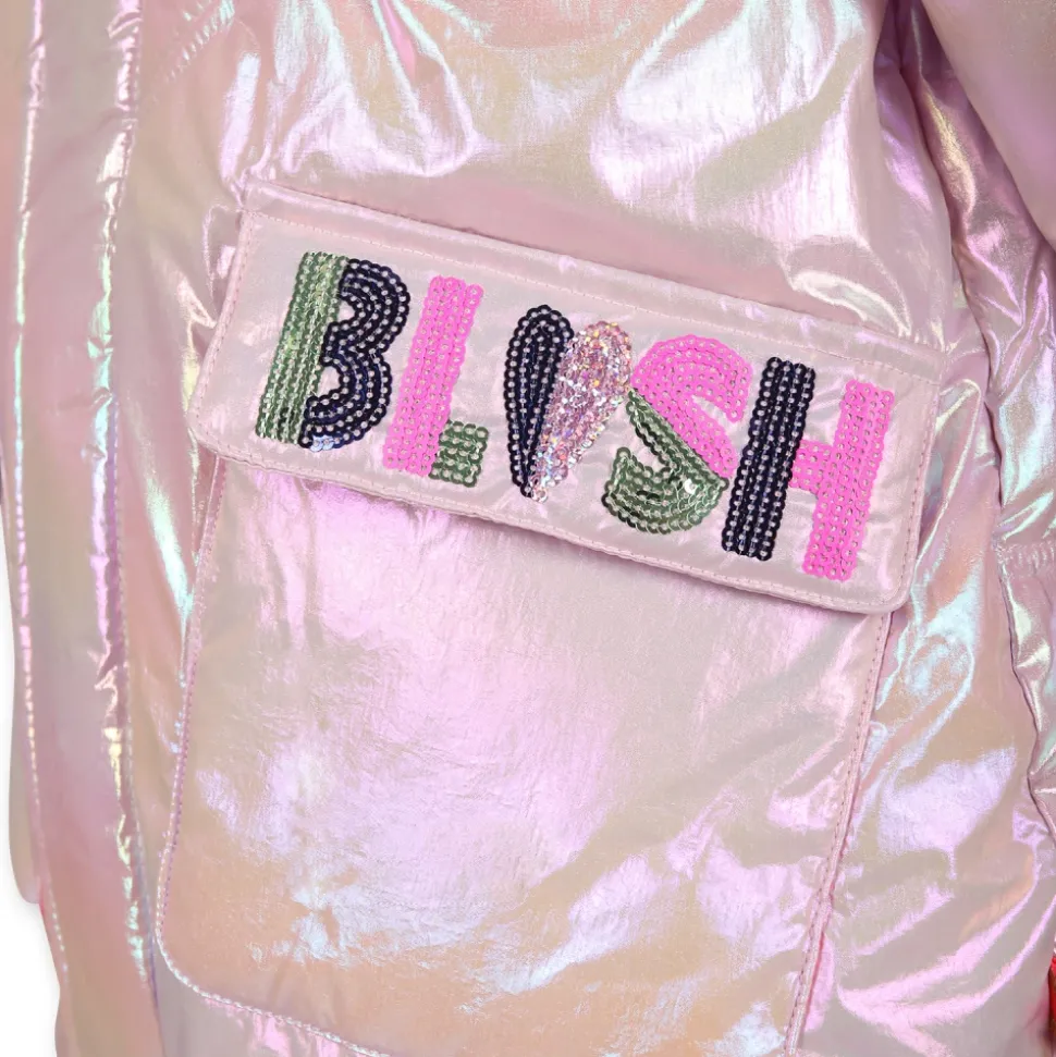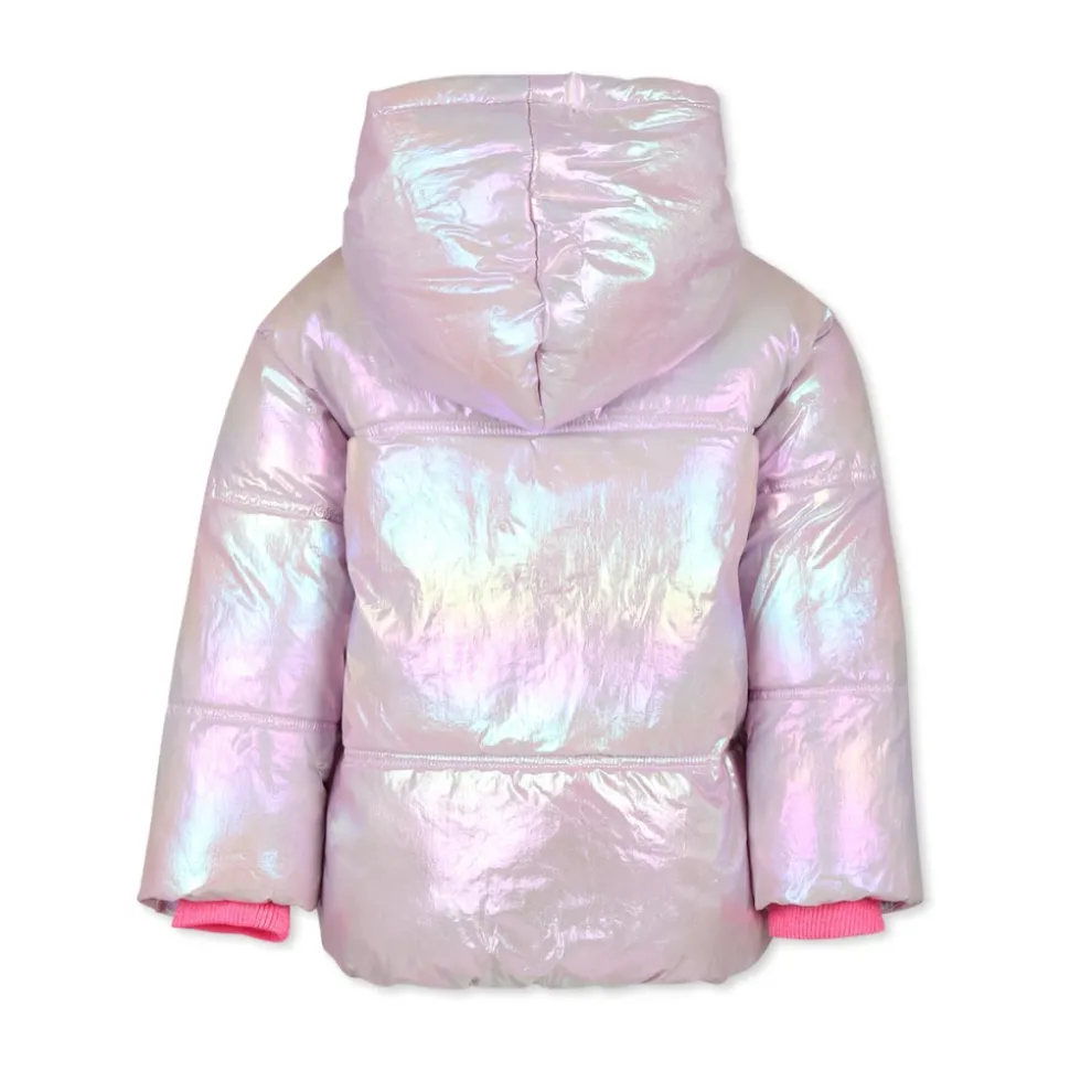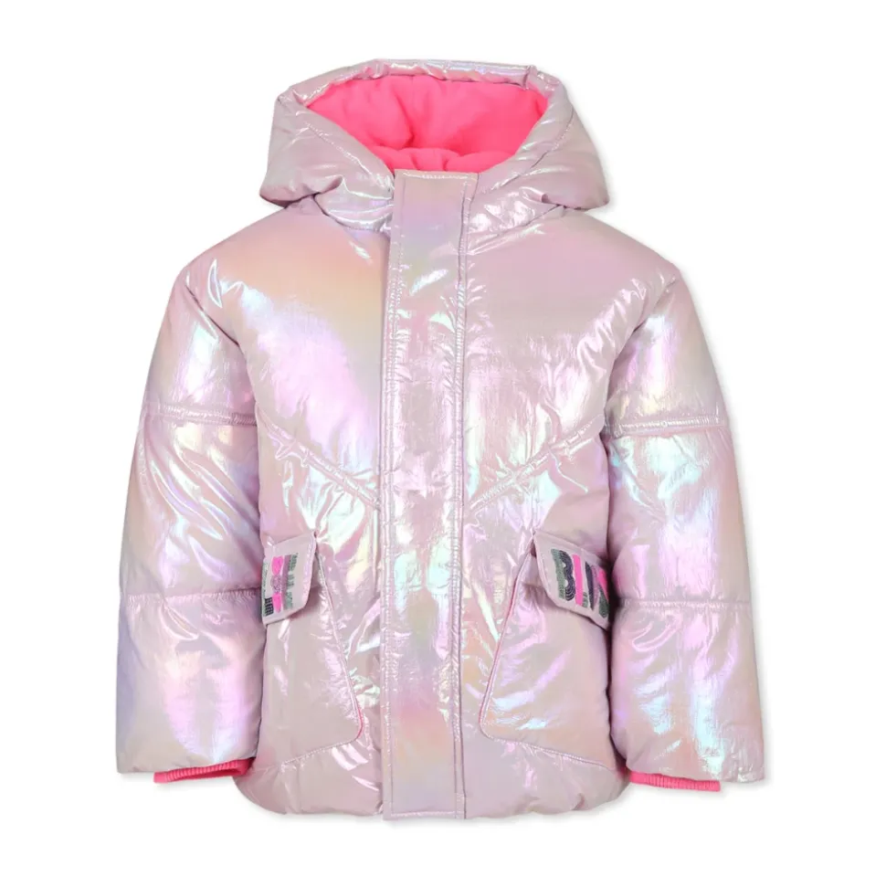 Blijf warm en stijlvol met deze Billieblush zware zilveren donsjas. Met lange mouwen, capuchon, ritssluiting en drukknoopsluiting aan de voorkant, voorzakken en geribbelde manchetten. Versierd met een paillettenlogo op de voorkant. Gemaakt van 100% polyamide. Machinewas op 30°C.