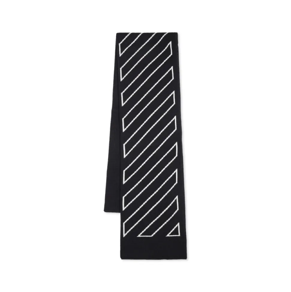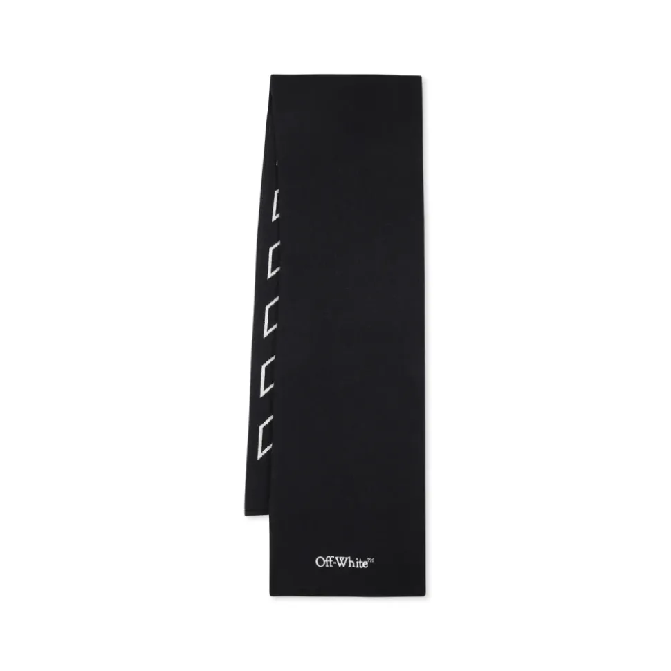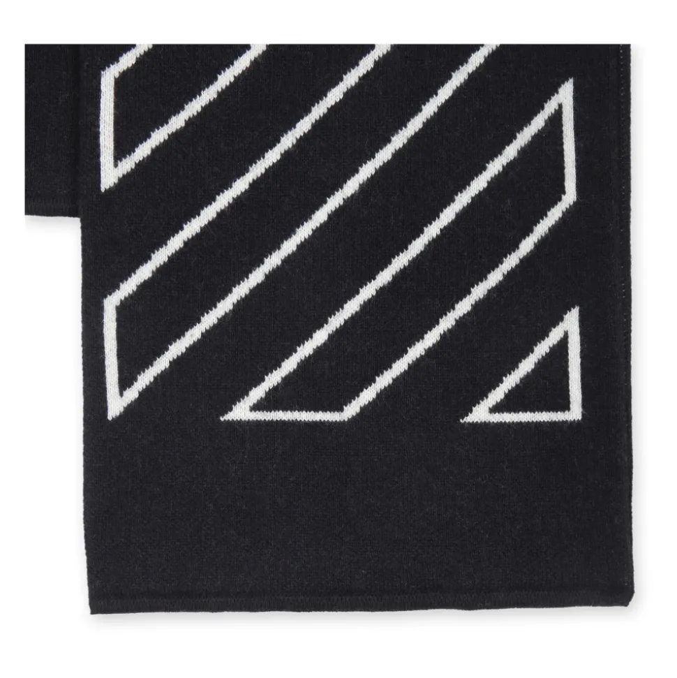Upgrade de accessoires van je kind met deze zwarte Off White sjaal. Gemaakt van een zachte gebreide mix van 55% wol en 45% katoen, met iconische witte pijlen aan de ene kant en een geborduurd logo aan de andere kant. Afmetingen: 21cm x 141cm. Alleen handwas.