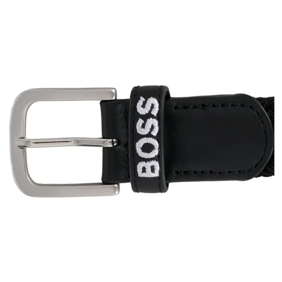 Voeg een stijlvolle touch toe aan de outfit van je kind met deze zwarte gevlochten en elastische riem van Hugo. Met een wit geborduurd logo aan de voorkant, is deze riem gemaakt van 53% Elastodiene en 47% Polypropyleen.