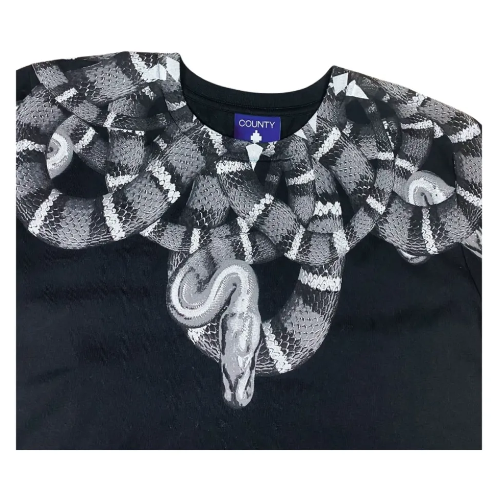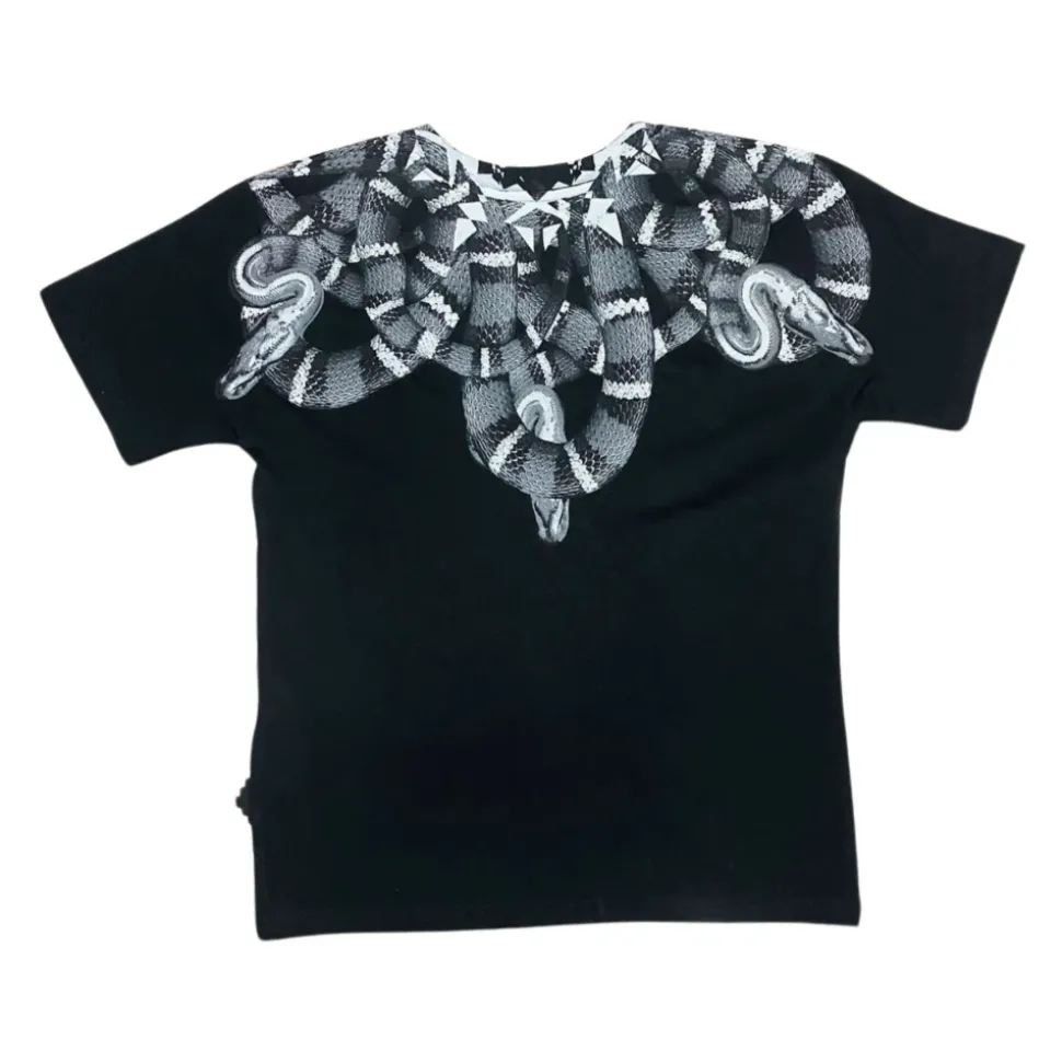 Ontdek het Marcelo Burlon Kids zwarte T-shirt voor jongens, met een klassiek ronde hals ontwerp, korte mouwen, wit contrastprint aan beide zijden, zijlogo patch, reguliere pasvorm en rechte zoom. Gemaakt van 100% katoen.
