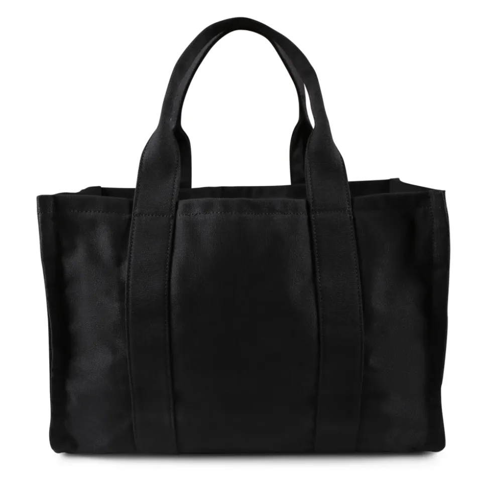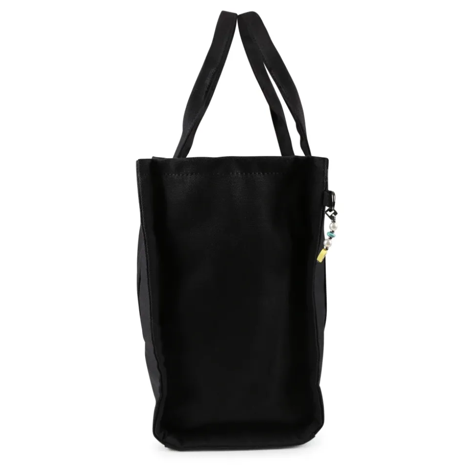 BARROW Kinderen Zwarte Canvas Strandtas – Stijlvolle en praktische zwarte canvas strandtas van BARROW voor kinderen. Voorzien van handvatten, interne magnetische knoop, bedel met peline en iconische gele glimlach, versierd met geel logo en glimlach aan de voorkant. Afmetingen: 43cm x 29cm x 18cm. Gemaakt van 100% katoen.