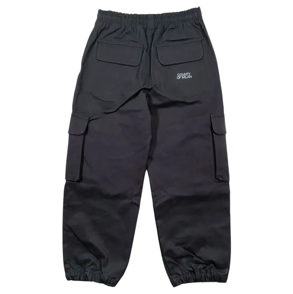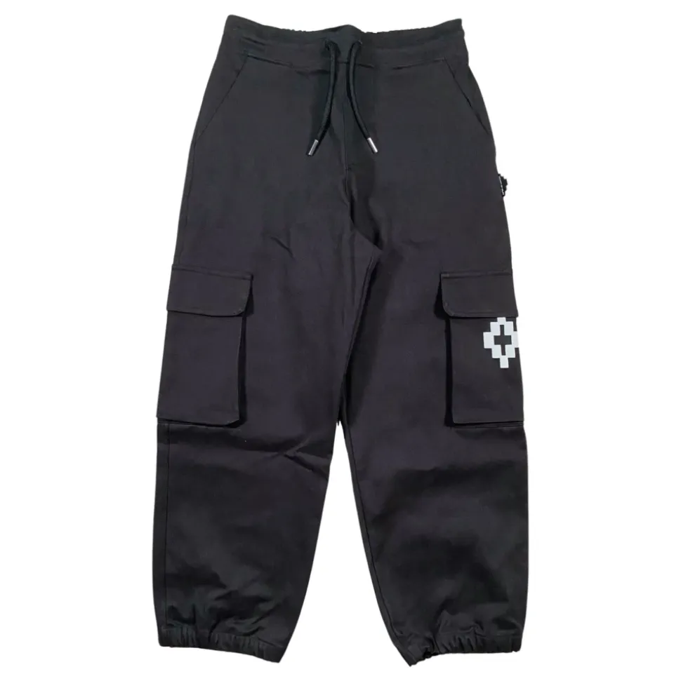 Kleed je kleine man in stijl met deze Marcelo Burlon Kids zwarte broek. Voorzien van een elastische tailleband met trekkoord, twee zijzakken, twee achterzakken, twee cargozakken, logo patch aan de achterkant, wit contrast logo borduursel en een losse pasvorm. Gemaakt van 98% katoen 2% elastaan. Gemaakt in Italië.