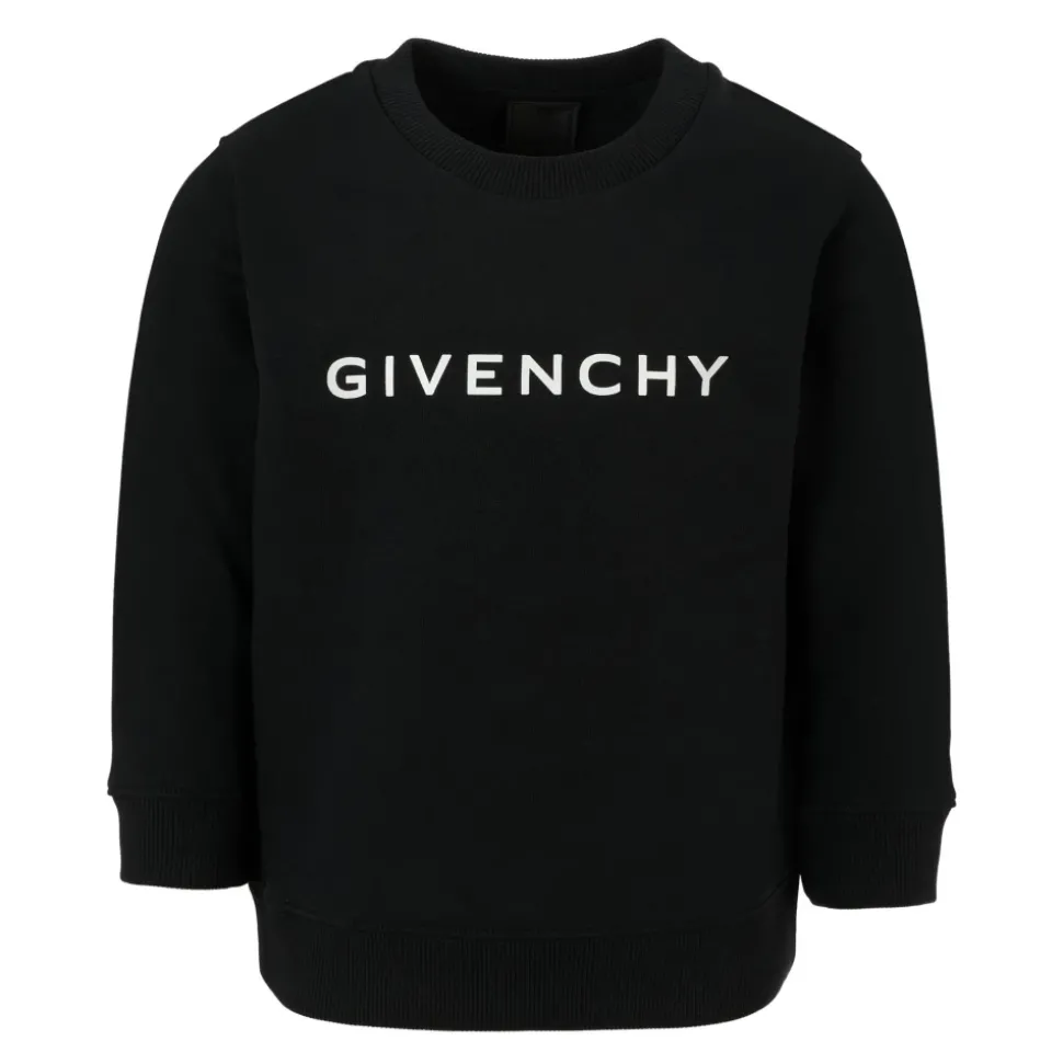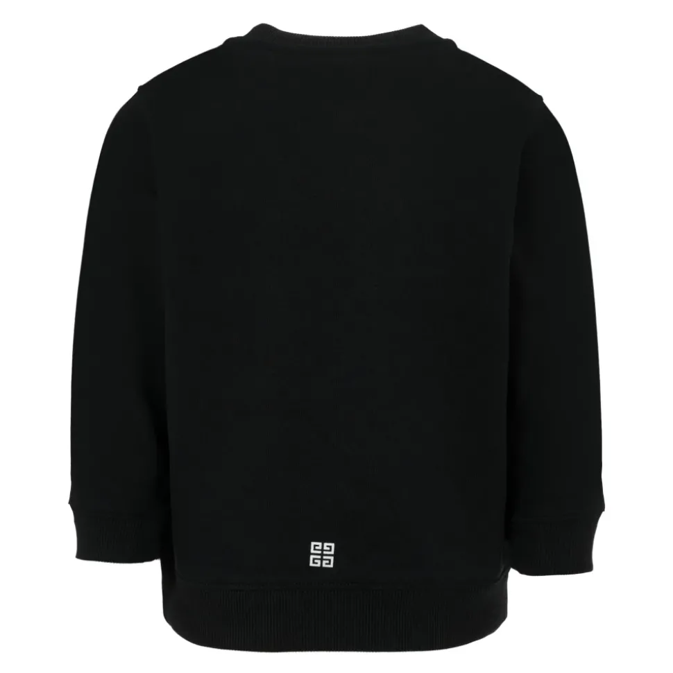 Kleed je kleintje in stijl met deze zwarte sweatshirt van Givenchy Kids. Gemaakt van een zachte mix van katoen fleece, met lange mouwen, een ronde hals, geribbelde manchetten en zoom. De voorkant is versierd met een logoprint, terwijl de achterkant het iconische 4G-motief toont. Gemaakt van 85% katoen en 15% polyester. Machinewas op 30°C.