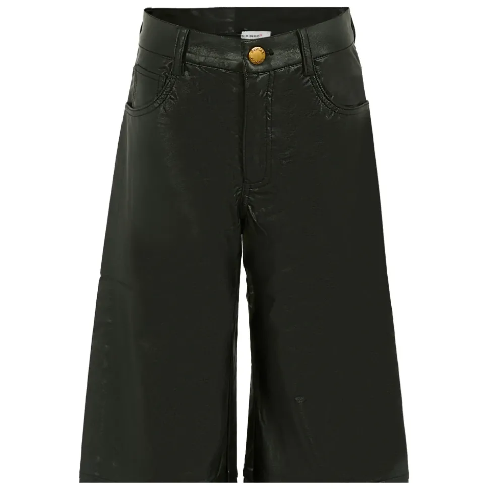 Upgrade de stijl van je kind met deze PINKO zwarte imitatieleren broek met vijf zakken, riemlussen, ritssluiting aan de voorkant en logoknoop. Gemaakt van 100% viscose. Machinewas op 30°C.