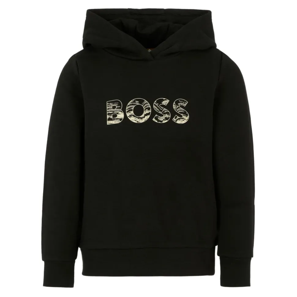 Upgrade de garderobe van je kind met deze zwarte Hugo sweatshirt. Gemaakt van fleece katoen, met lange mouwen, een capuchon, geribbelde manchetten en zoom. Het ivoorkleurige rubberen logo op de voorkant voegt een stijlvolle touch toe. Gemaakt van 87% katoen en 13% polyester. Machinewas op 30°C.