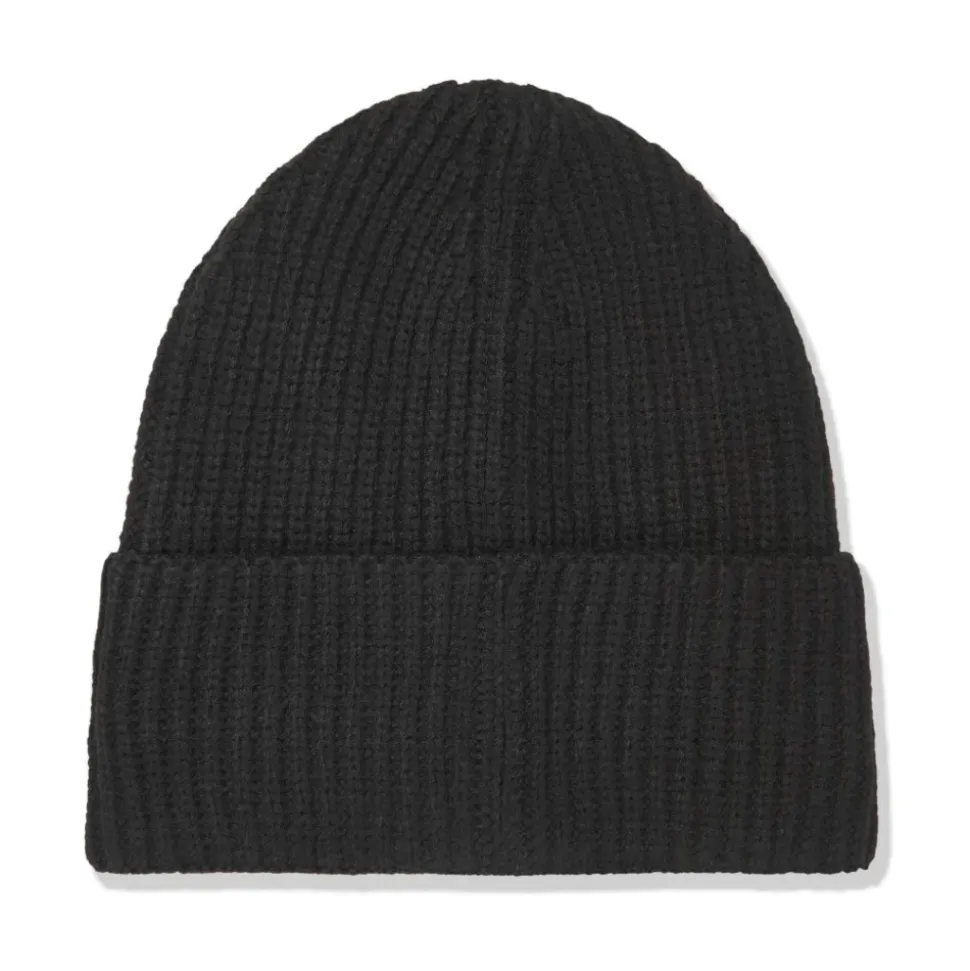 Zwarte Gebreide Rand Logo Patch Hoed