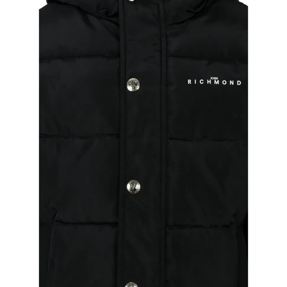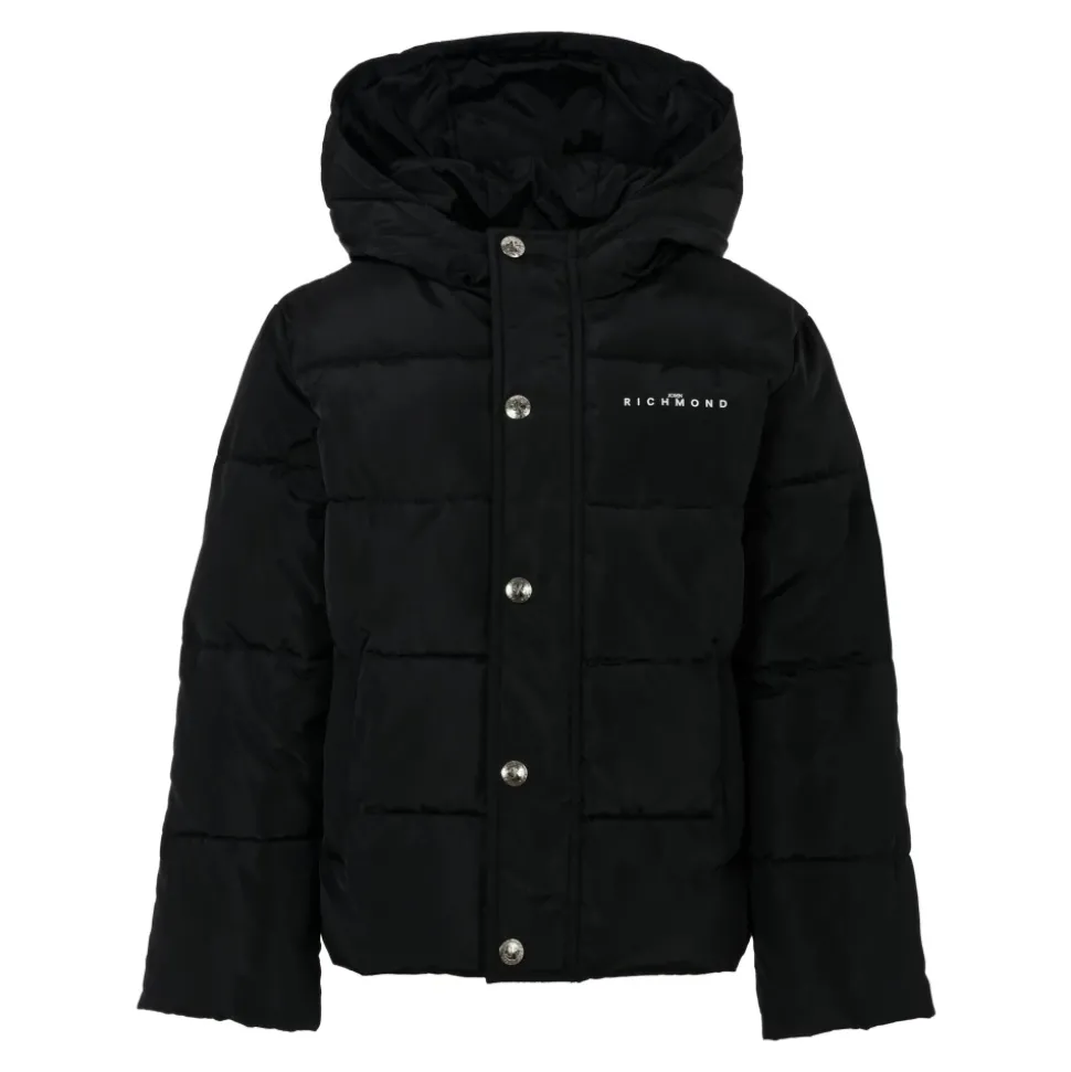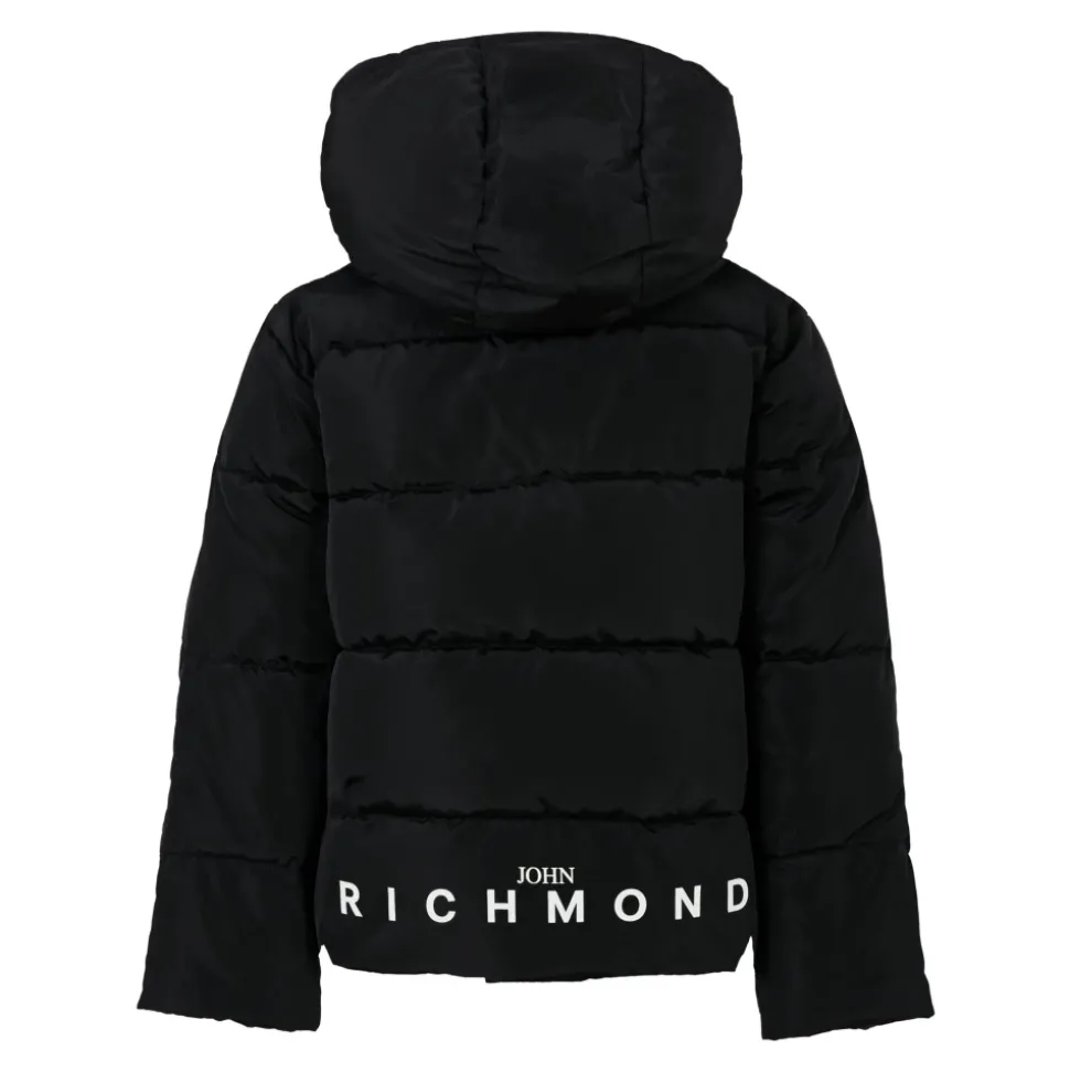 Blijf warm en stijlvol met deze zwarte John Richmond winterjas voor kinderen. Voorzien van een zware, gewatteerde en doorgestikte ontwerp met lange mouwen, capuchon, ritssluiting aan de voorkant en drukknoopsluiting. Compleet met zijzakken en een wit logo op de borst en rug. Gemaakt van 100% polyester. Machinewas op 40°C.