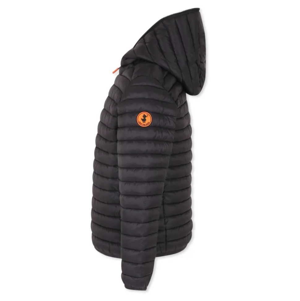 Zwarte Gewatteerde Donsjas met Capuchon