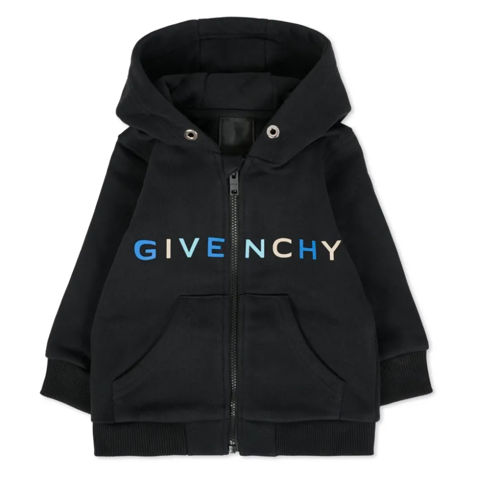 Upgrade de stijl van je kleintje met deze zwarte sweatshirt van Givenchy Kids. Gemaakt van een mix van geborsteld katoen, met lange mouwen, een capuchon, een ritssluiting aan de voorkant, zijzakken en geribbelde manchetten en zoom. Het rubberen logo op de voorkant voegt een vleugje luxe toe. Gemaakt van 85% katoen en 15% polyester. Machinewas op 30°C.