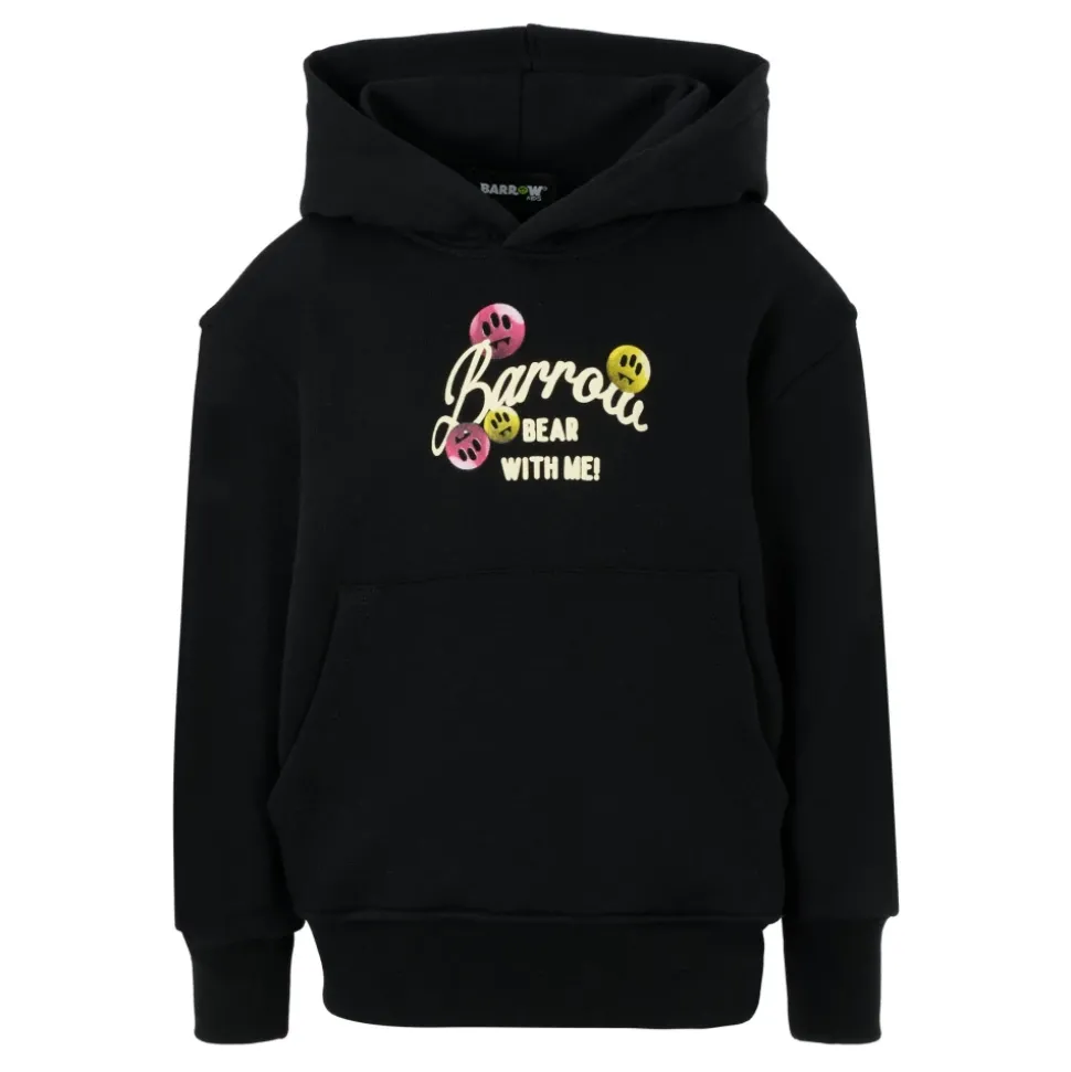 Upgrade de stijl van je kind met deze zwarte sweatshirt van pluche katoen van BARROW. Met lange mouwen, capuchon, geribbelde zoom en manchetten en een zak aan de voorkant. Versierd met een logo en iconische smiley aan de voorkant, gekleurd beerenprint en logo op de achterkant. Wordt geleverd met een logo sleutelhanger in het geel. Gemaakt van 100% katoen. Machinewasbaar op 30°C.