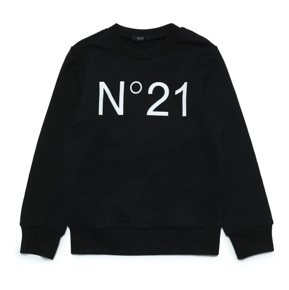 Upgrade de garderobe van je kind met deze N21 zwarte katoenen sweatshirt met een logo print op de voorkant. Deze ronde hals sweatshirt heeft lange mouwen en geribbelde manchetten en zoom voor een stijlvolle uitstraling.