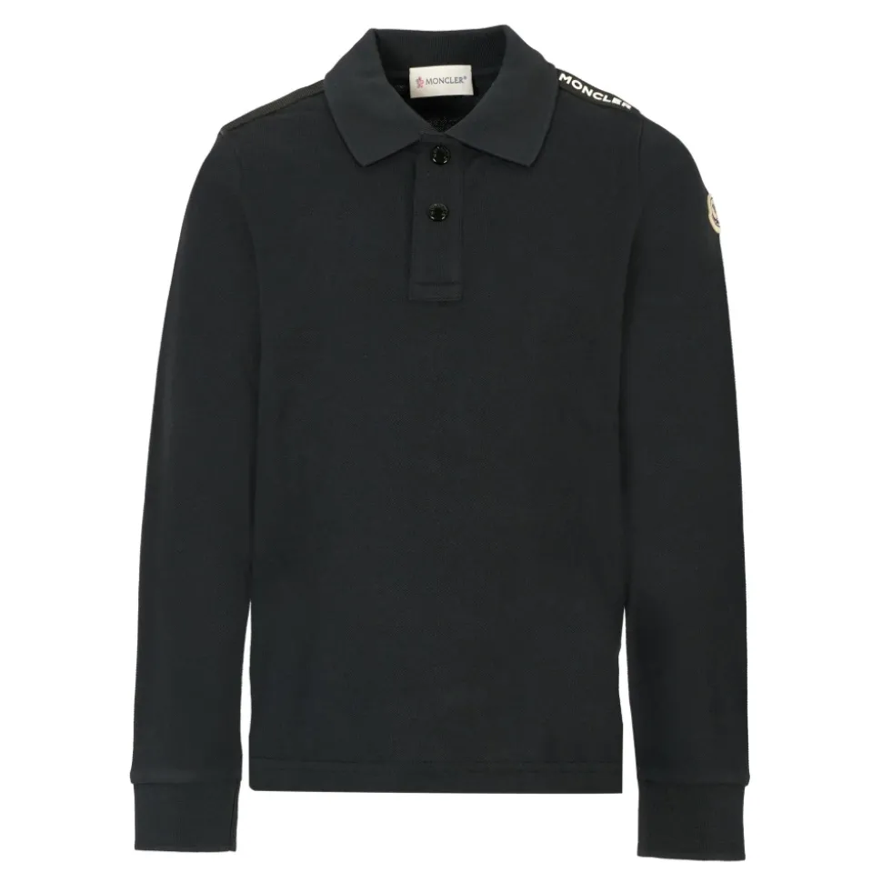 Upgrade de garderobe van je kind met deze zwarte Moncler katoenen piqué polo shirt. Met lange mouwen, een puntkraag, drukknoopsluiting en iconisch logopatch op de mouw. Gemaakt van 100% katoen. Machinewasbaar op 30°C.
