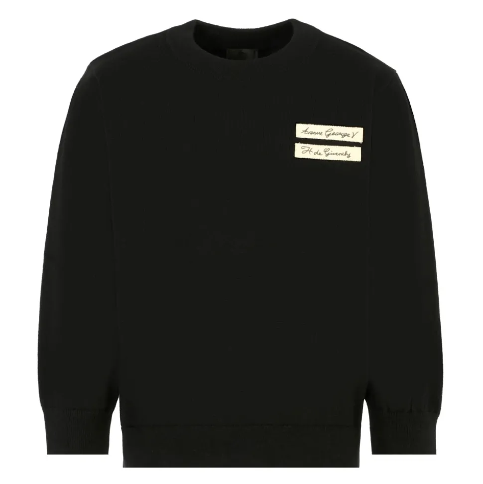 Upgrade de stijl van je kind met deze zwarte trui van Givenchy Kids. Gemaakt van een luxe katoenmix, met lange mouwen, een geribbelde ronde hals, manchetten en zoom. Het borstgedeelte is versierd met een patch met de woorden ‘Avenue George V, H de Givenchy’. Gemaakt van 95% katoen en 5% kasjmier. Alleen handwas.
