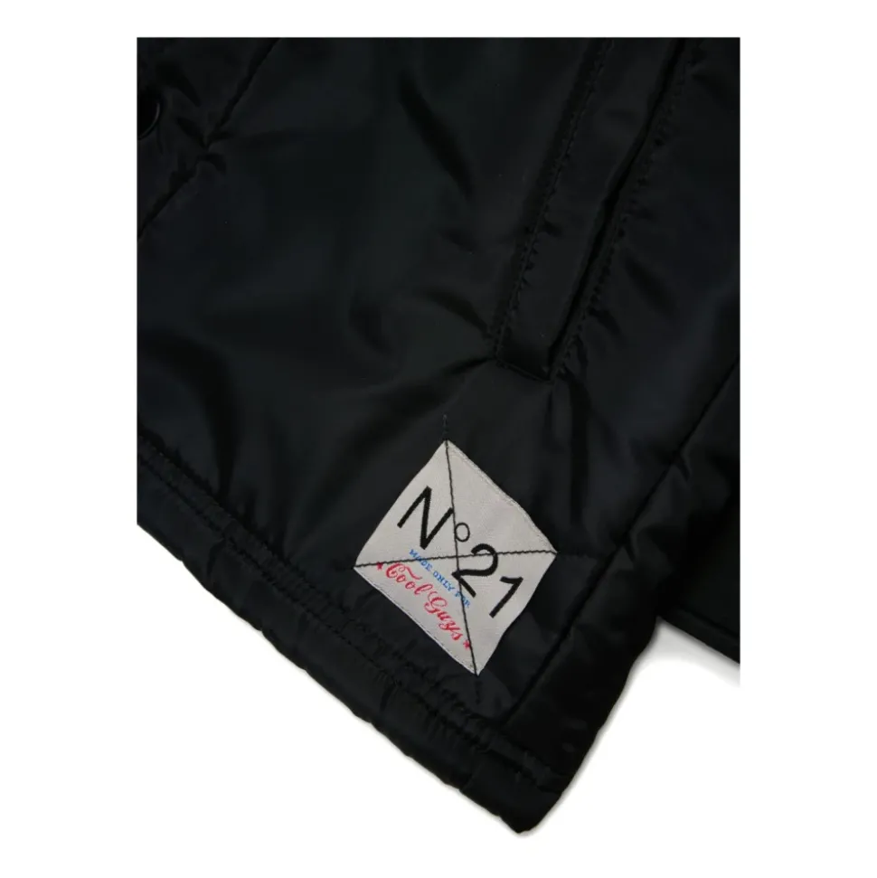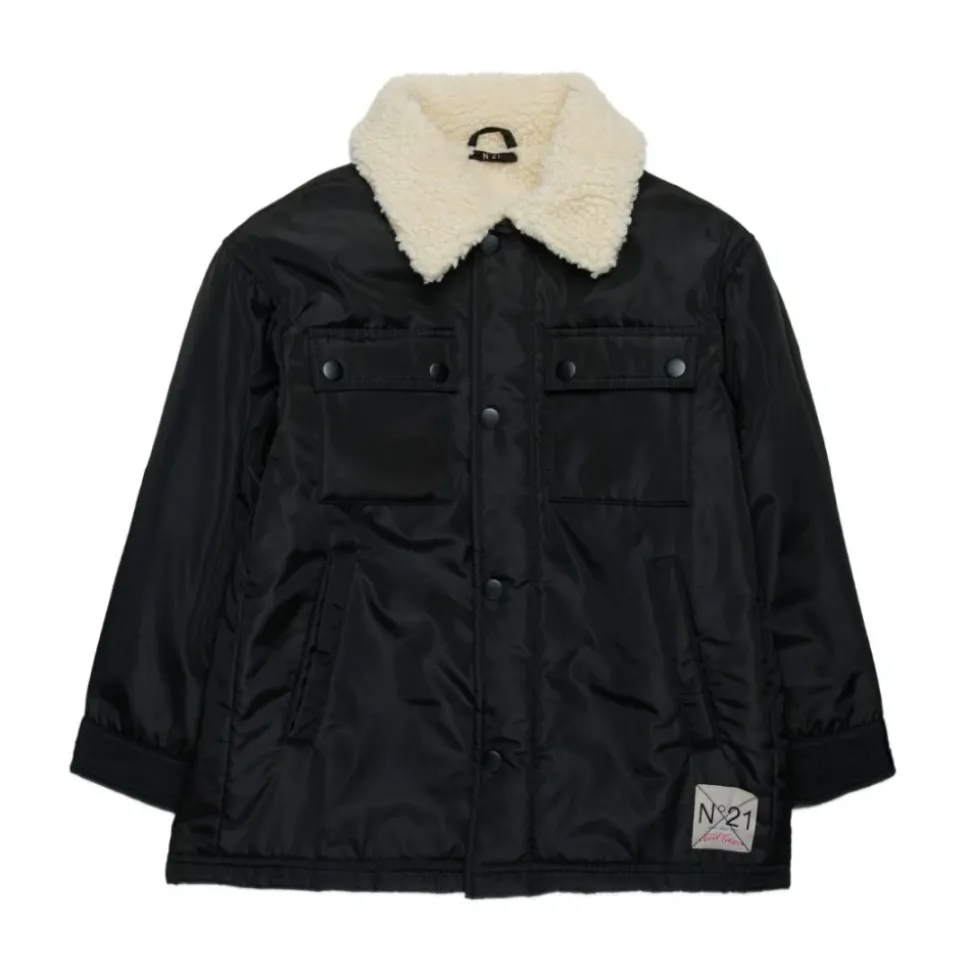 Blijf warm en stijlvol met deze Nº21 Kids jas met logo applicatie. Deze zwarte winterjas heeft een voorsluiting met drukknopen, klepzakken op de borst, twee zijzakken en lange mouwen. Gemaakt van 100% polyester voering, padding en buitenmateriaal.