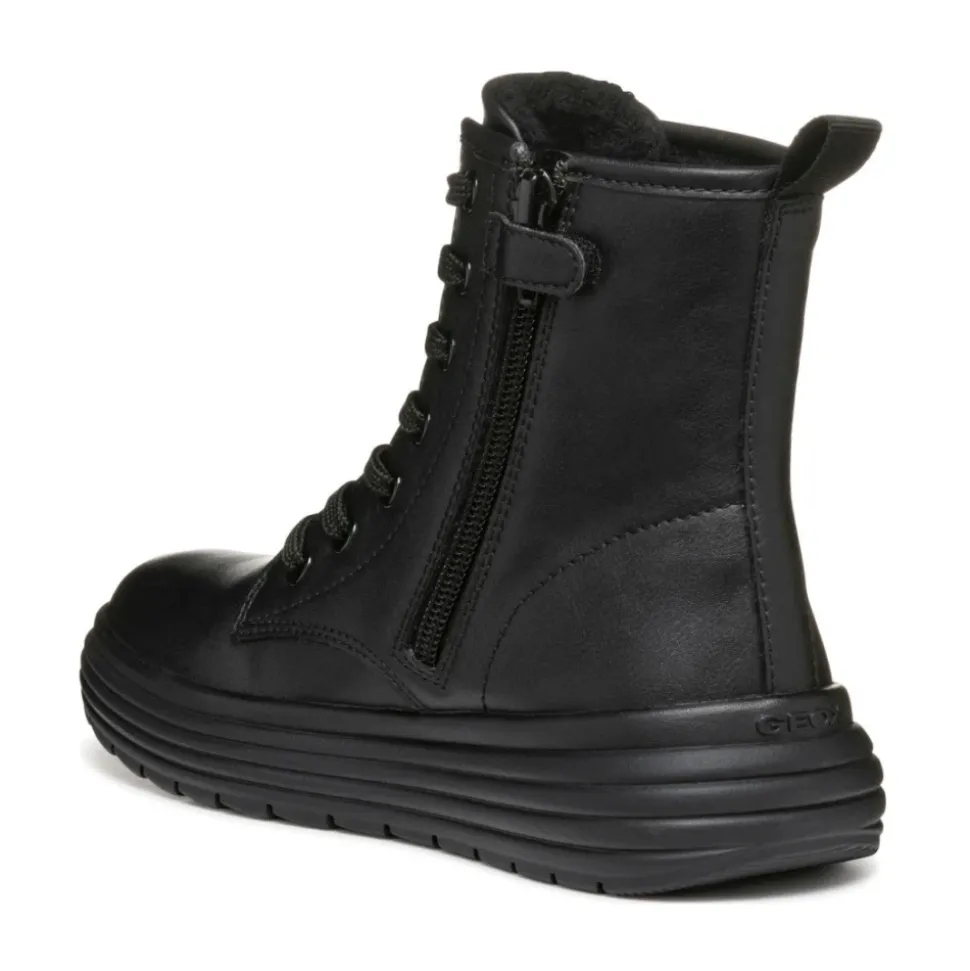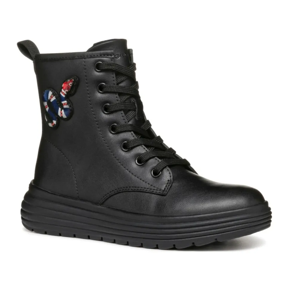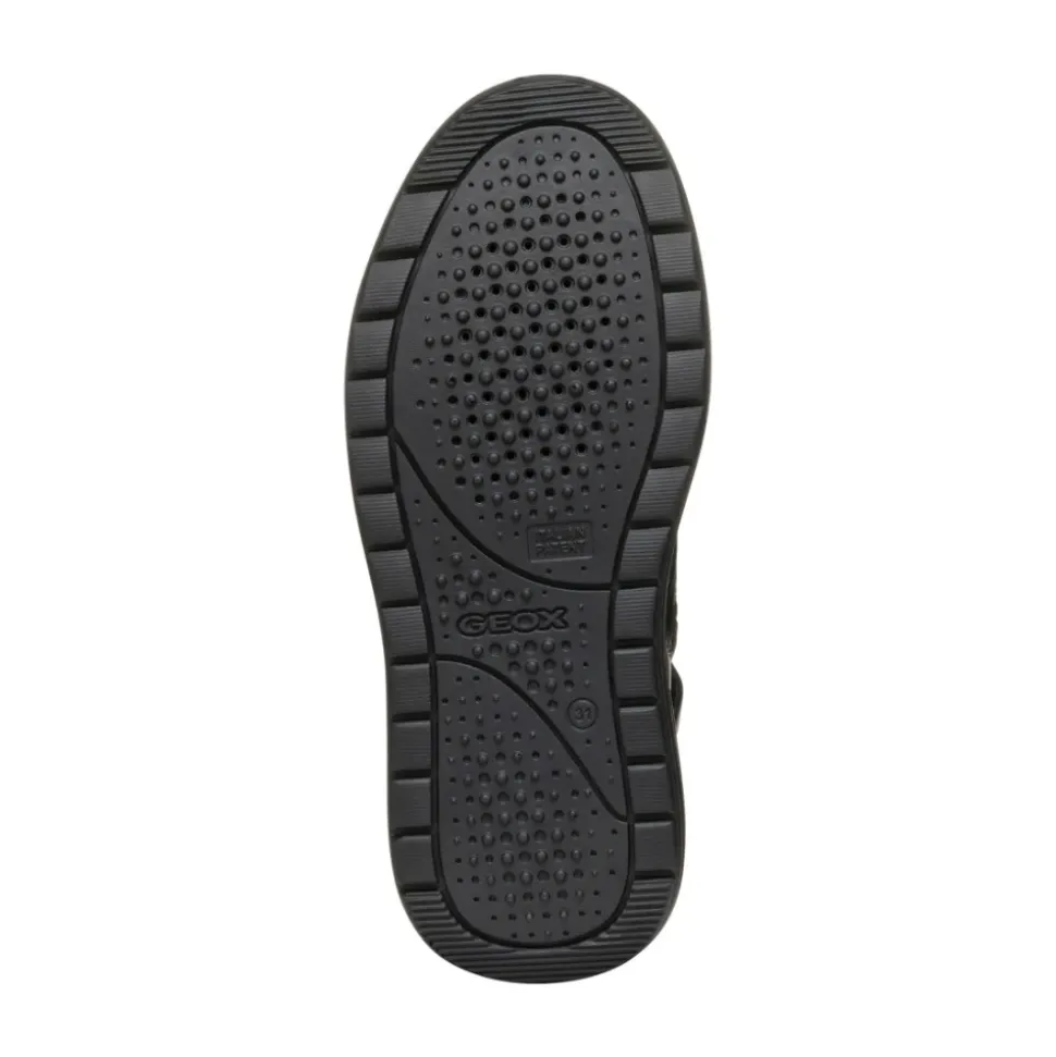Koop deze stijlvolle Geox laarzen voor meisjes, perfect voor kinderen. Deze zwarte laarzen (Productcode: J46ETE 000BC C9999) zijn gemaakt van 100% Polyurethaan (PU) bovenkant, wol, polyester (PES) en Polyurethaan (PU) voering, en 100% Polyurethaan (PU) zool.