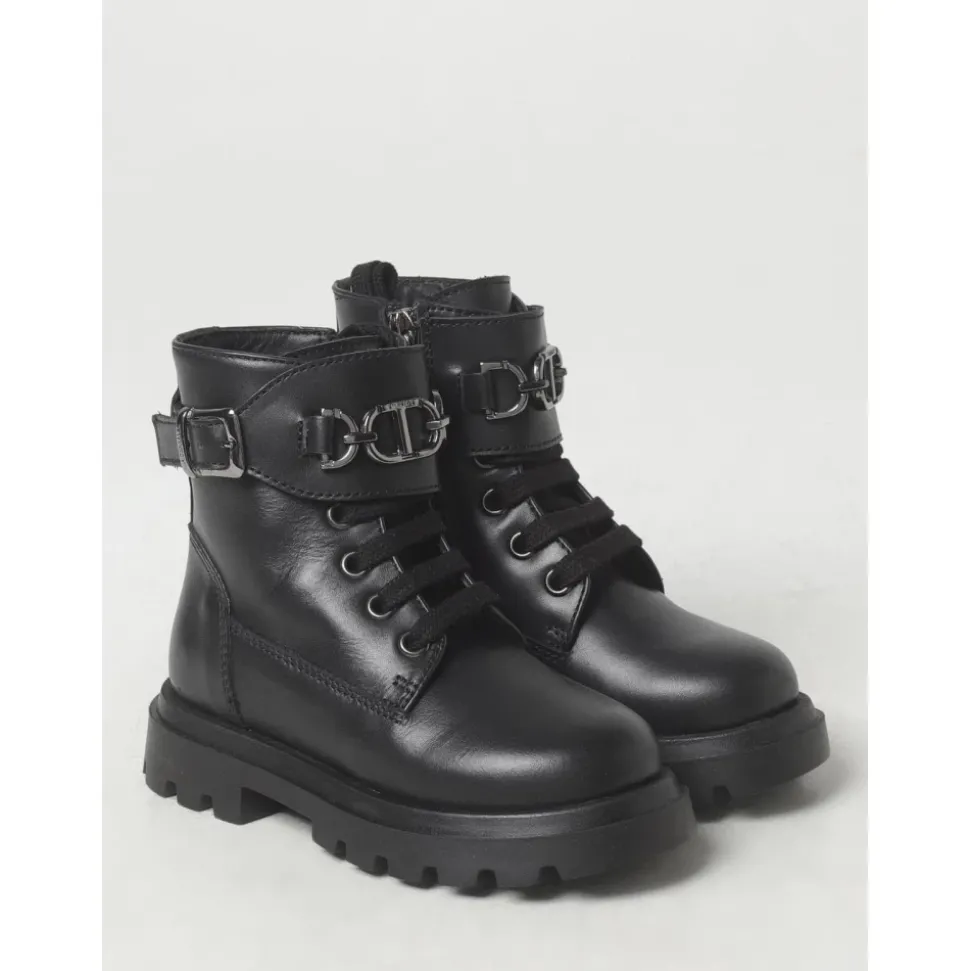 Twinset Schoenen Kids Zwart. Deze schoenen zijn ontworpen met een strakke zwarte afwerking, ideaal voor het dagelijks gebruik van uw kind. Gemaakt van hoogwaardig leer, bieden ze comfort en duurzaamheid, zodat uw kleintje gemakkelijk kan spelen en ontdekken.