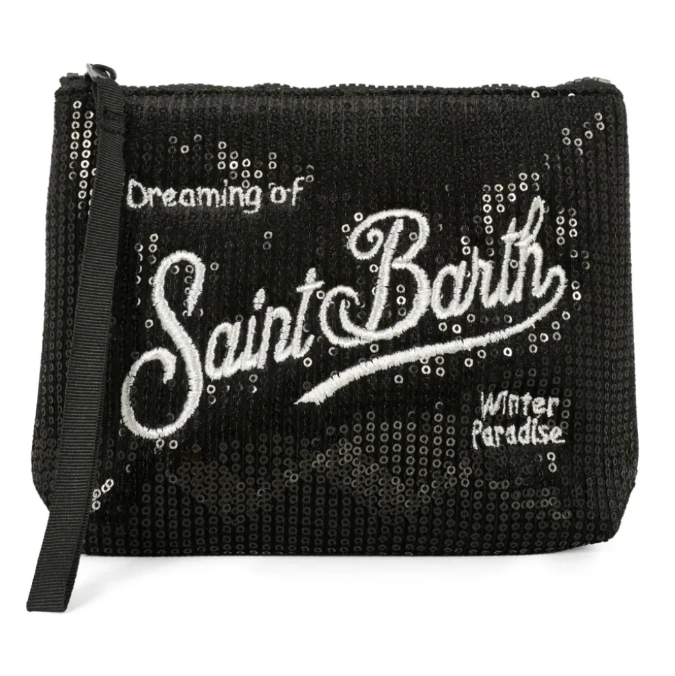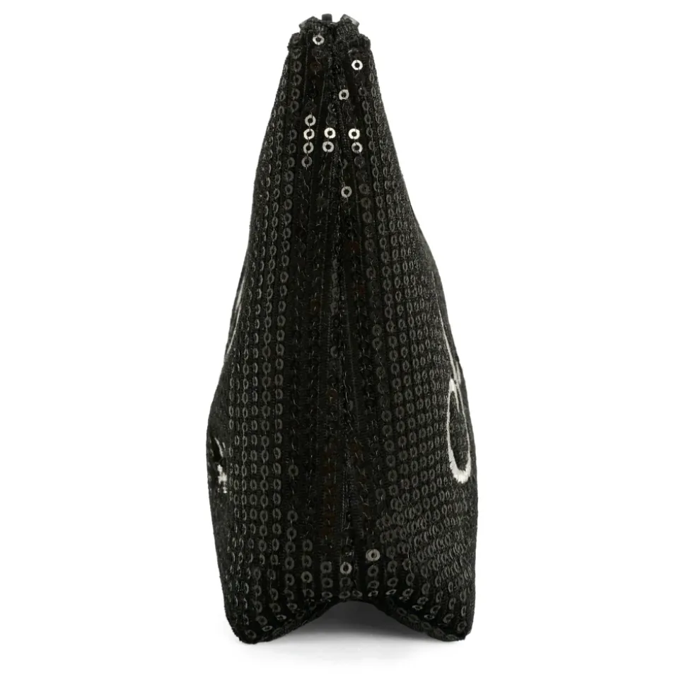 Zwarte Pailletten Clutch Tas met Geborduurd Logo