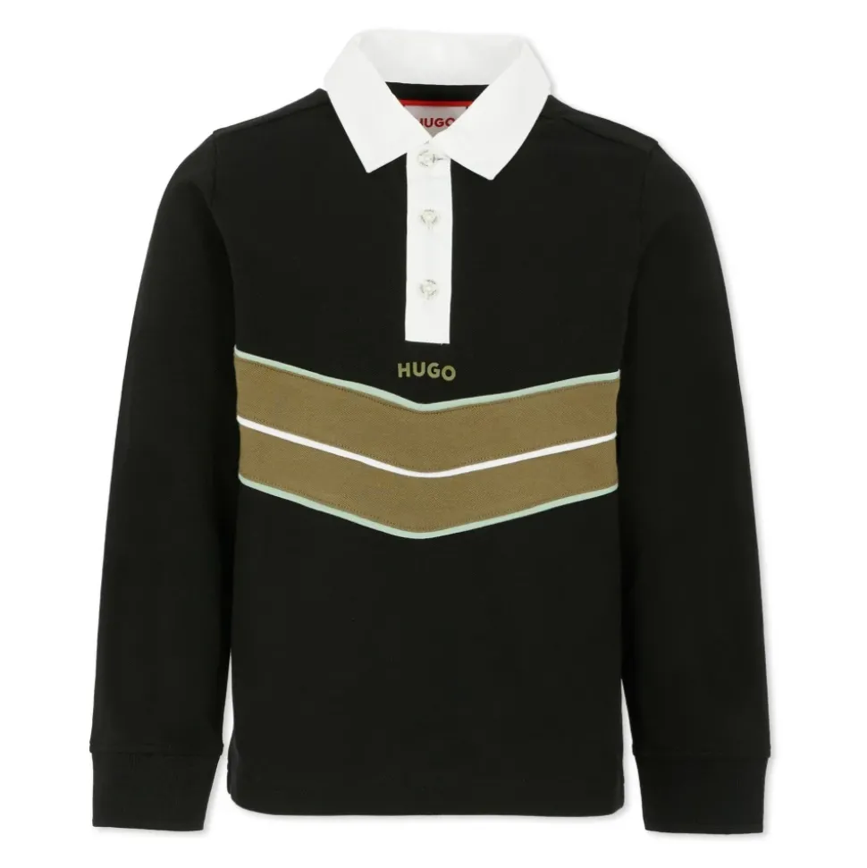 Upgrade de garderobe van je kind met deze zwarte piqué polo van Hugo. Met lange mouwen, een witte puntkraag, groene details aan de voorkant en een rubberen logo is deze polo zowel stijlvol als comfortabel. Gemaakt van 96% katoen en 4% elastaan. Machinewasbaar op 30°C.