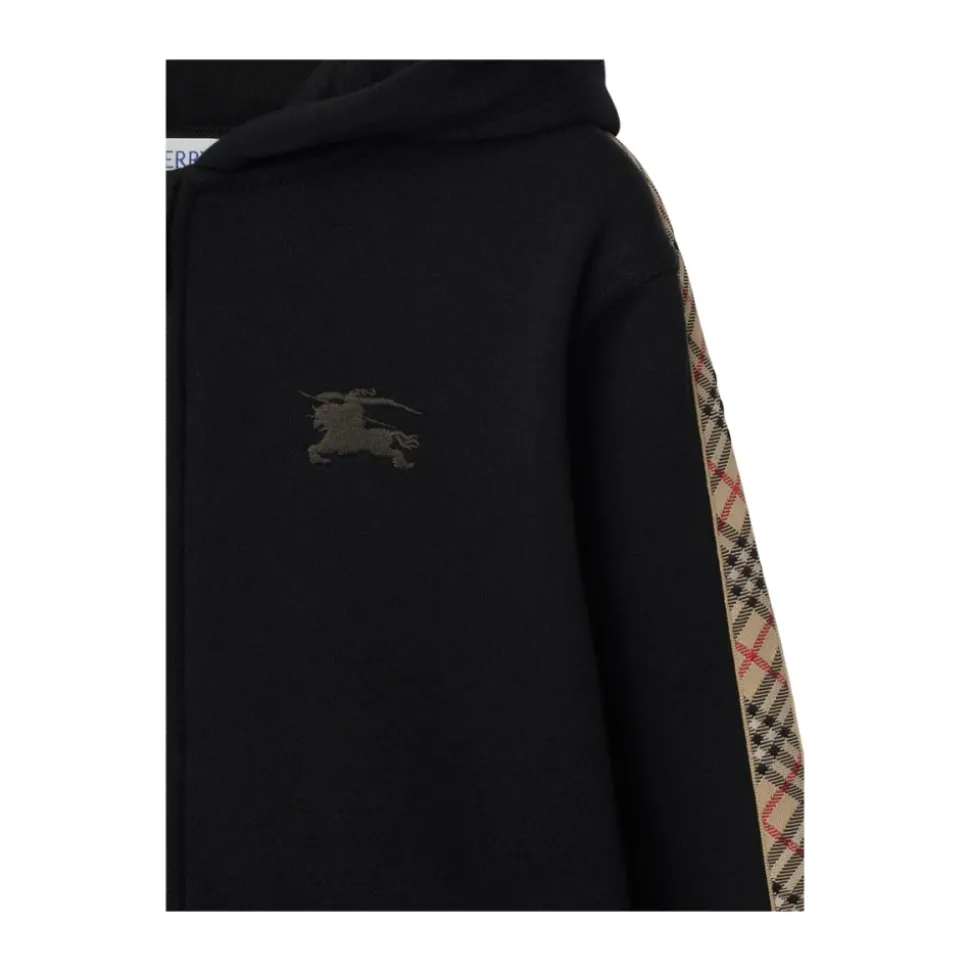 Geef de stijl van je kleine heer een boost met deze zwarte Burberry sweatshirt met ritssluiting aan de voorkant en het kenmerkende Equestrian Knight motief op een nonchalante capuchon.